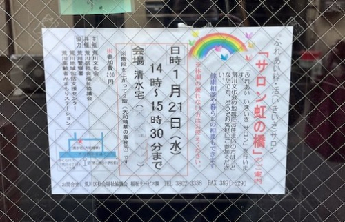 2026.01.22 【荒川包括】サロン虹の橋にお伺いしました 活動報告 #サロン #みまもりステーション 2026.01.21 【荒川包括】ほうじ茶の会に参加しました 活動報告 #サロン #グリーフケアサロン 2025.12.25 【荒川包括】今月のほうじ茶の会(グリーフケア) 活動報告 #グリーフケア #サロン 2025.12.09 【荒川包括】やまぶき倶楽部に行ってきました。 活動報告 #サロン 2025.10.22 【荒川包括】さわやか出会いサロンにお邪魔しました 活動報告 #サロン 2025.10.08 【荒川包括】サロン世話人交流会に行ってきました。 活動報告 #サロン #交流会 2025.08.27 【荒川包括】楽らく会 行ってきました。 活動報告 #健康マージャン #サロン 2025.08.19 【荒川包括】仲道サロンに行ってきました。 活動報告 #サロン 2025.07.23 【荒川包括】サロン虹の橋に行ってきました。 活動報告 #サロン 2025.06.25 【荒川包括】山吹ふれあい館で熱中症予防の講座を行いました 活動報告 #サロン #熱中症予防 2025.06.19 【荒川包括】ほうじ茶の会(グリーフケア)を開催しました。 活動報告 #グリーフケア #サロン 2025.06.03 【荒川包括】看護学生さんとサロンに参加しました 活動報告 #サロン 2025.05.21 【荒川包括】ほうじ茶の会(グリーフケア)が始まりました 活動報告 #グリーフケア #サロン 2025.05.15 【荒川包括】ほうじ茶の会が生まれ変わります! お知らせ #グリーフケア #サロン 2025.05.13 【荒川包括】うぐいすサロンにお伺いしました 活動報告 #サロン 1 2 3