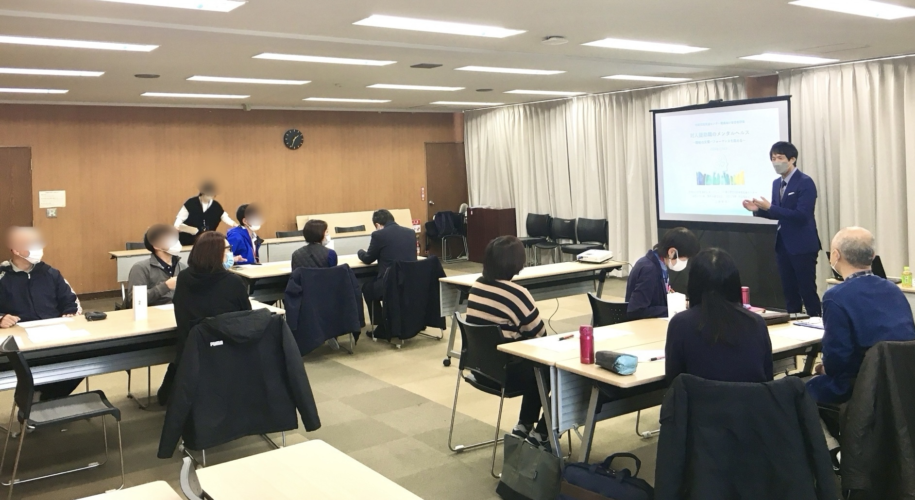 エビデンスに基づいた職員のストレスに感じやすい仕事の内容や、管理者として気を付けた方がよいことなど、分かりやすく説明していただきました。そして研修ではグループワークでそれぞれの困りごとなどを他の方々と共有させていただきました。