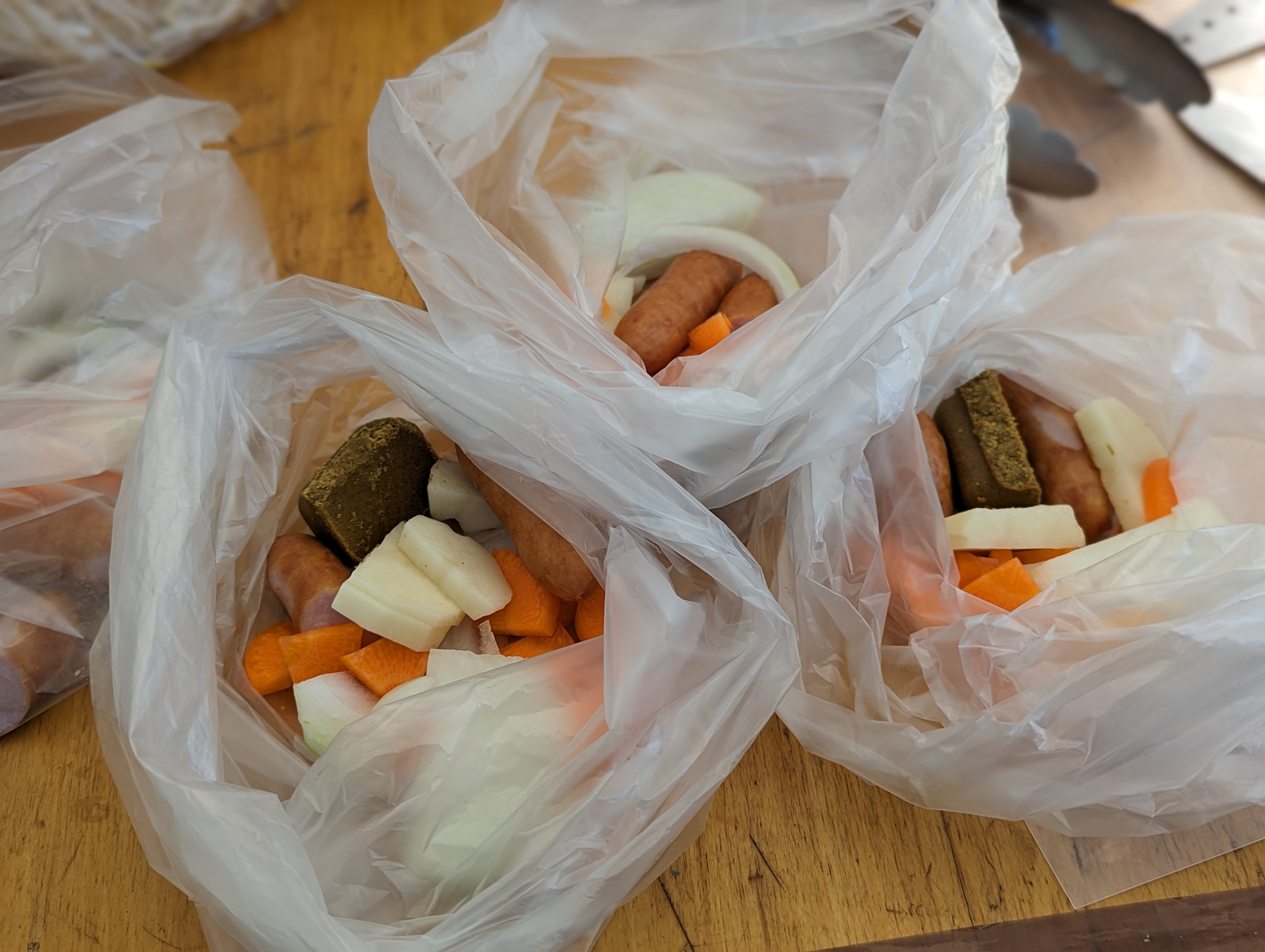 大鍋で大量に作るのかと想像していましたが、 ポリ袋で小分けにして作ると分けるのも楽だし衛生的です。 勉強になりました。