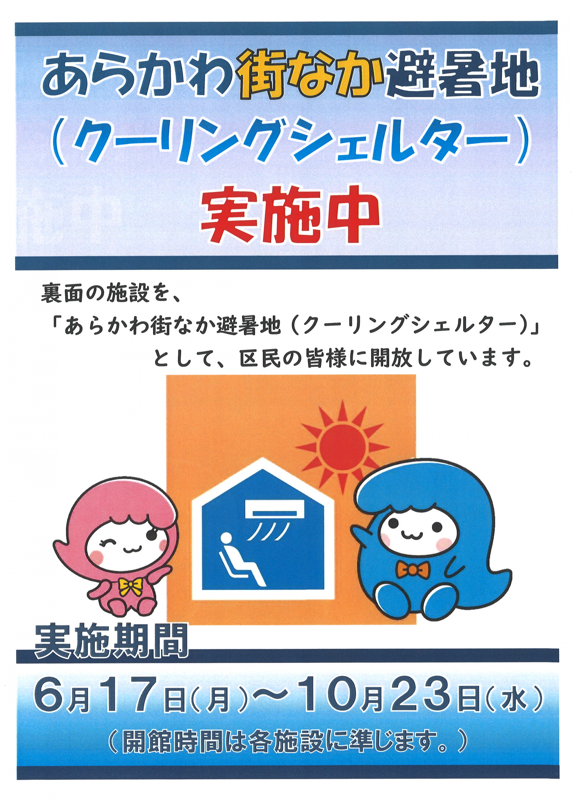 「あらかわ街なか避暑地(クーリングシェルター)」をご利用ください/荒川区公式サイト (city.arakawa.tokyo.jp)