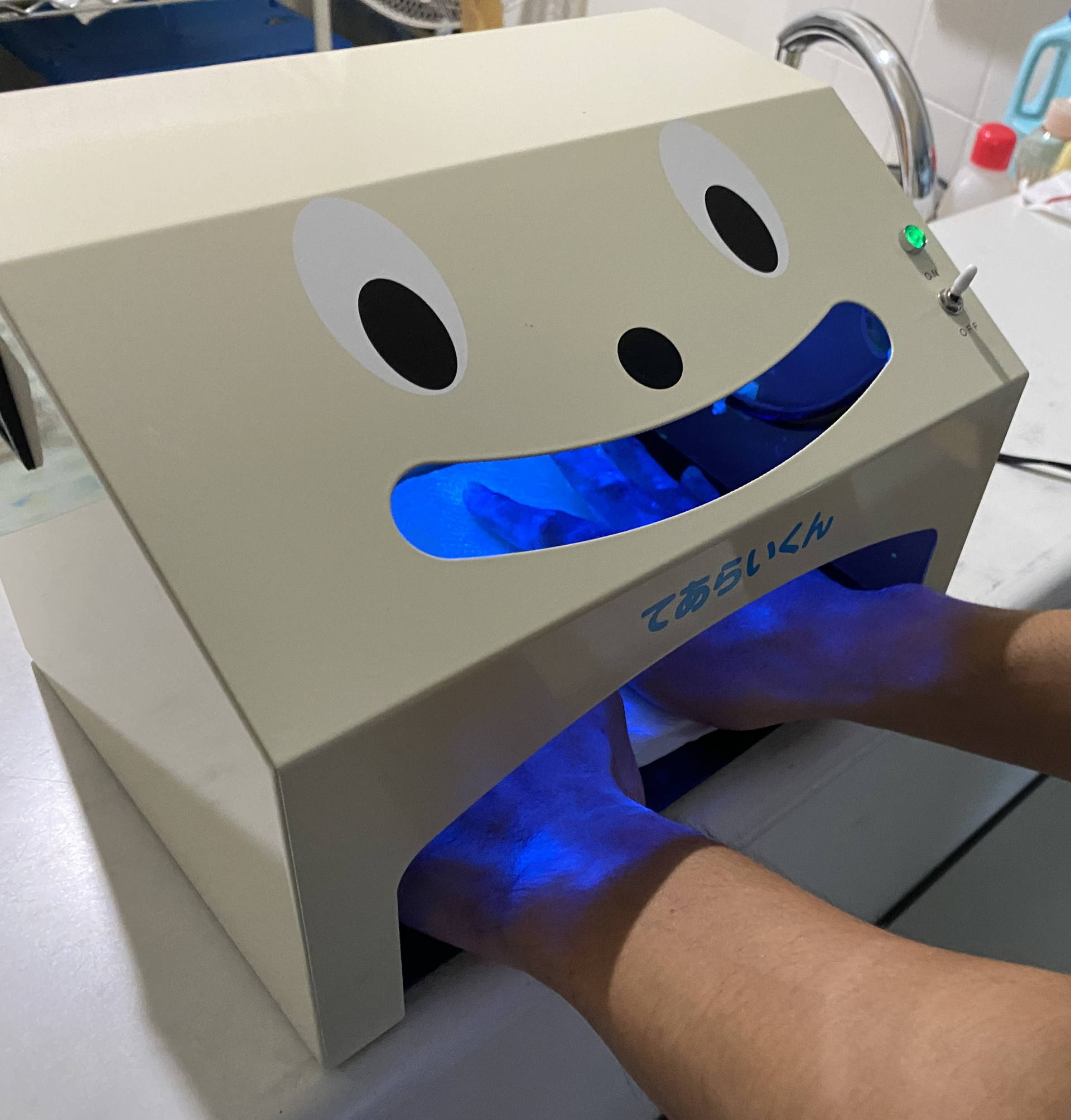 手洗いチェッカーの実技では、1回目に普段通りの手洗いをしていただき、2回目に衛生的な手洗いマニュアルを見ながら実践していただきました。