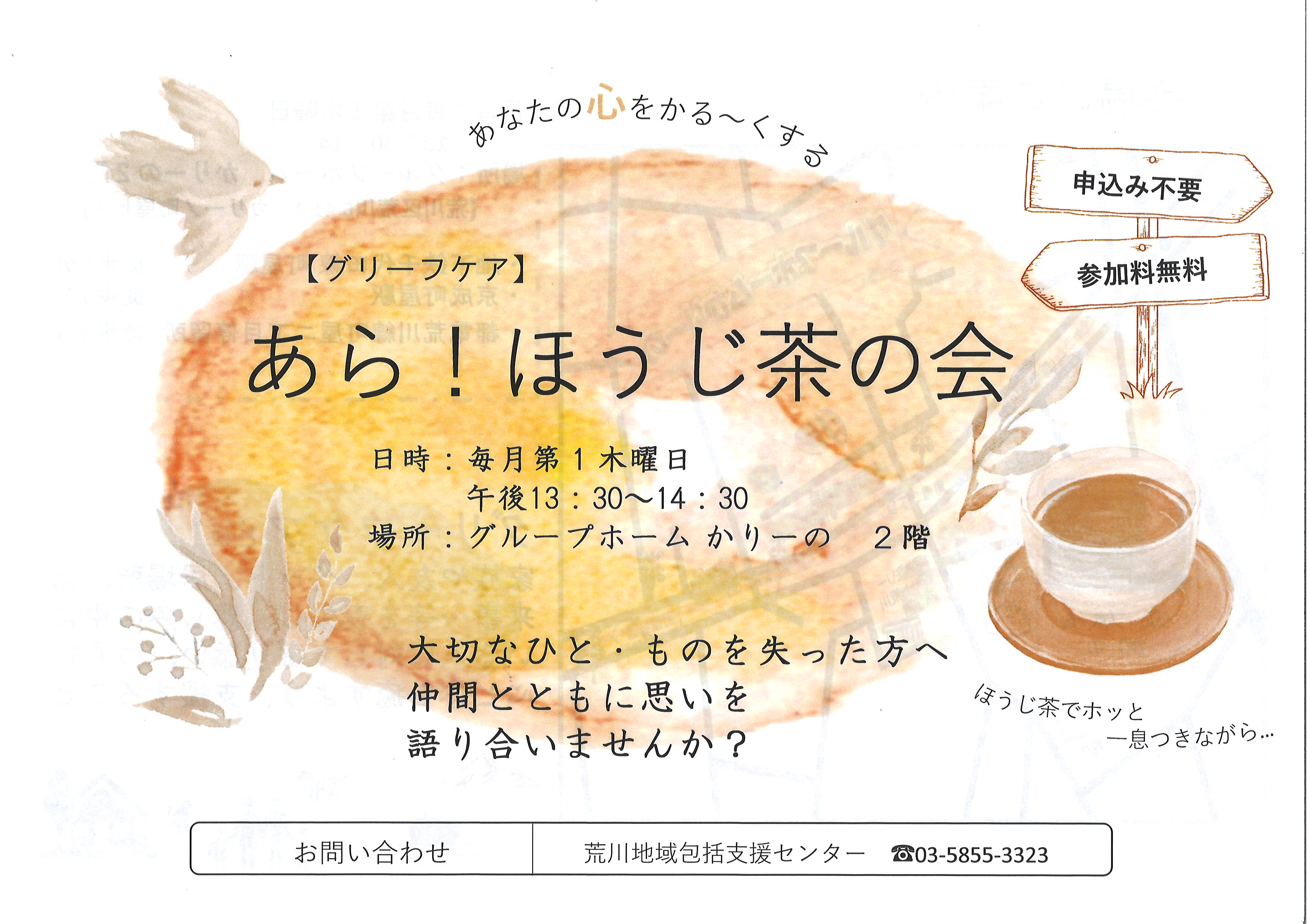 「あら!ほうじ茶の会」は、グリーフケアを目的として、参加者同士で語り合う場です。