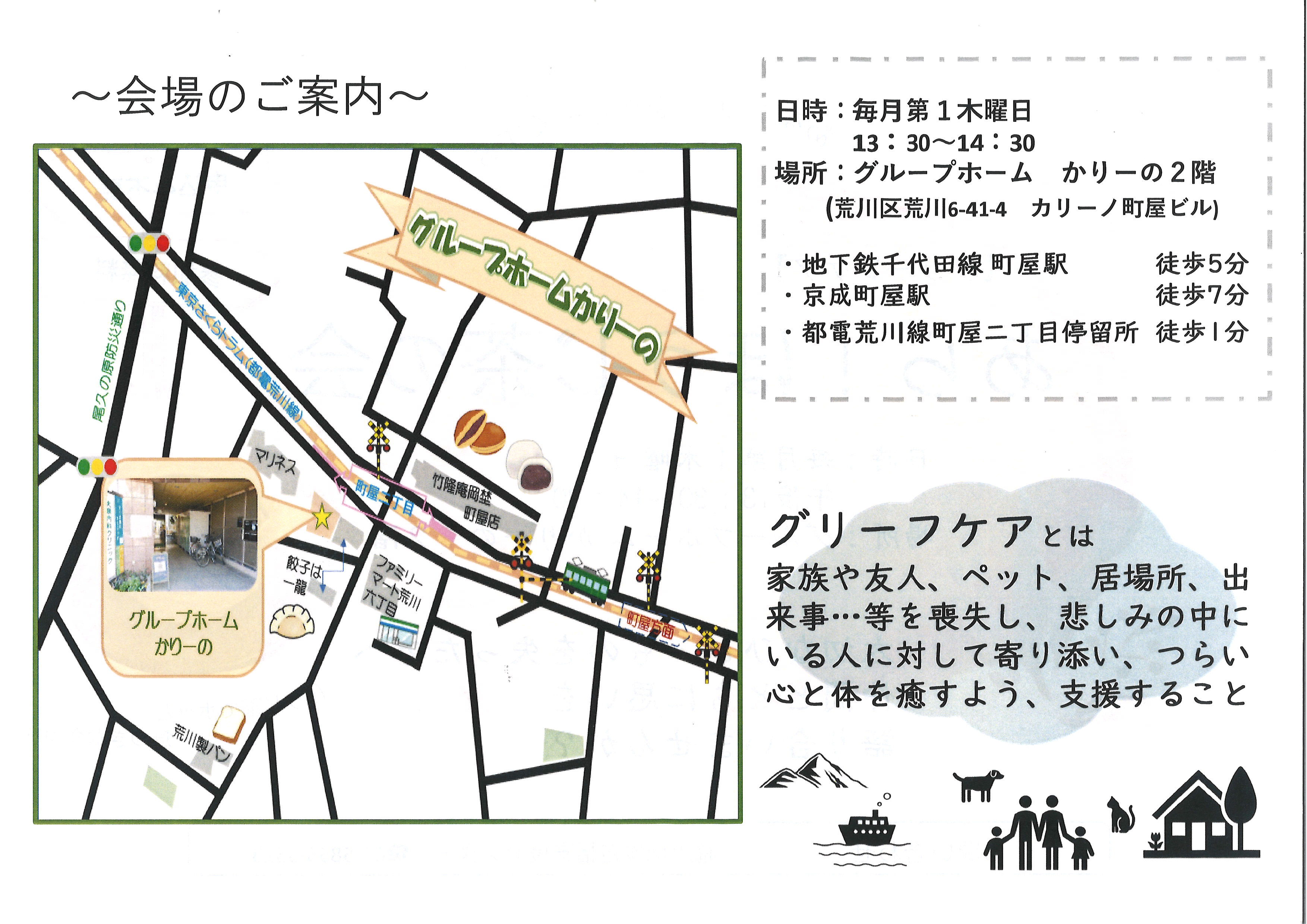 場所:グループホームかりーの 2階 (荒川6-41-4 カリーノ町屋ビル)