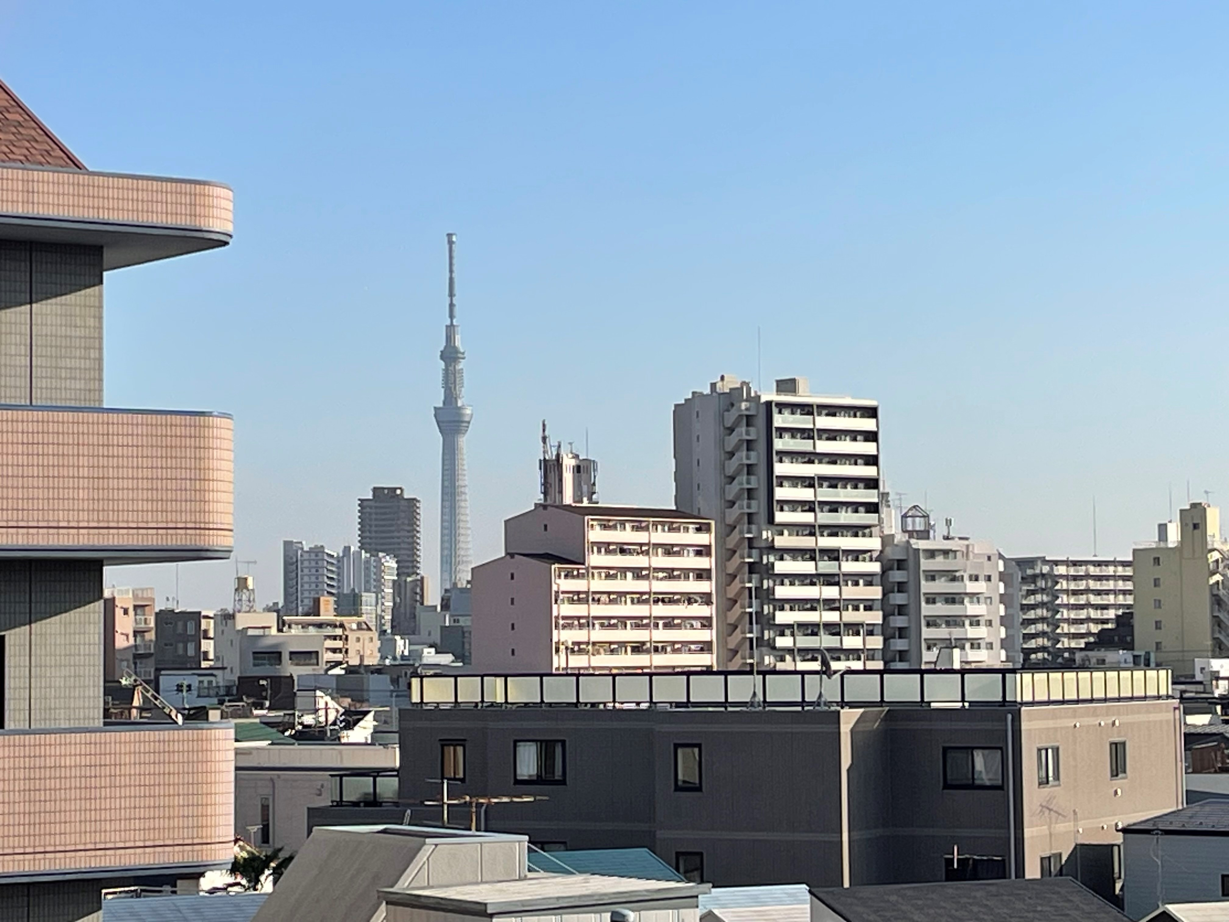 当日は晴天で、かりーのさんの階段からはスカイツリーがよく見えました!