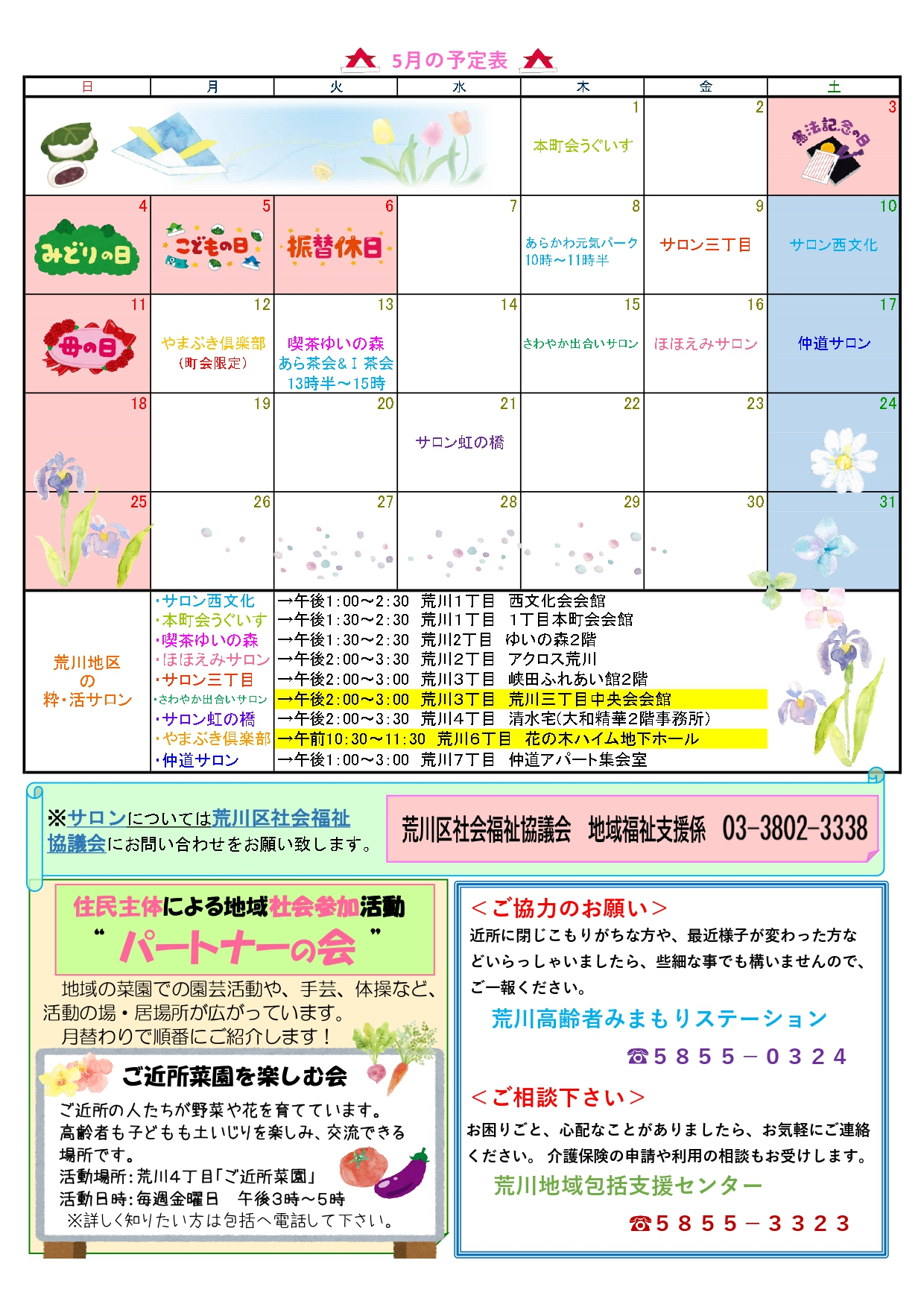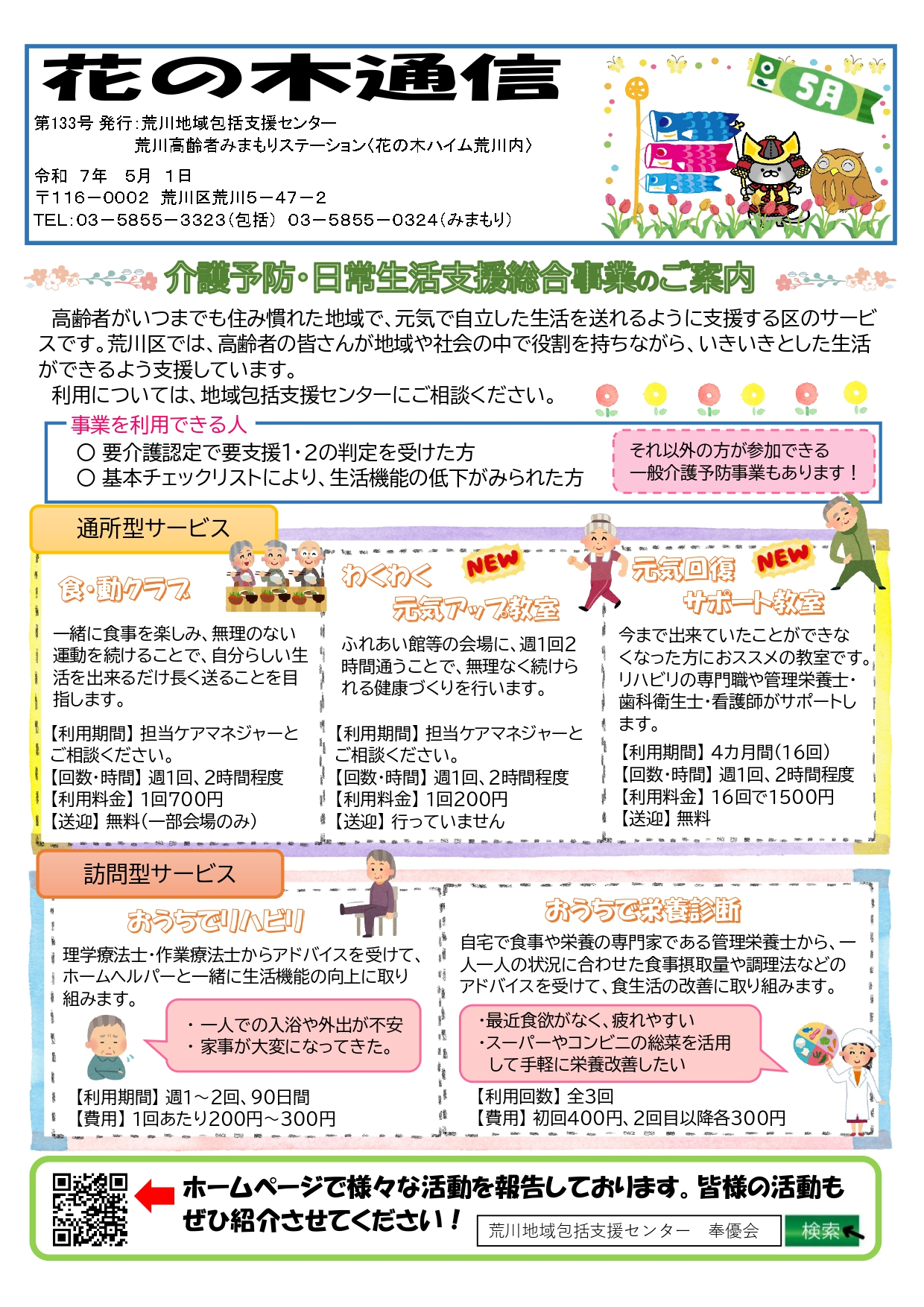 5月の花の木通信では、荒川区の介護予防・日常生活支援総合事業について、紹介させていただきました。