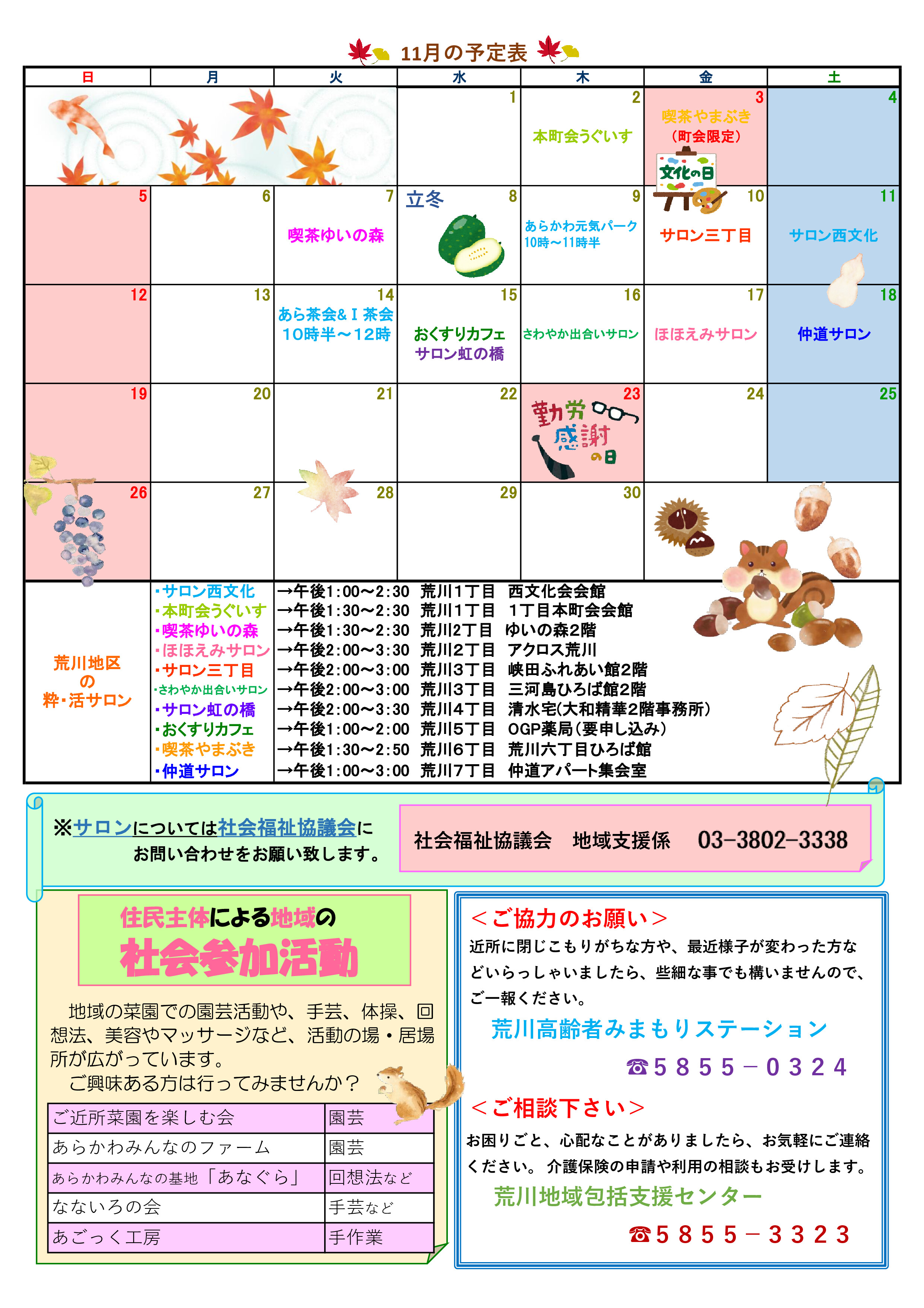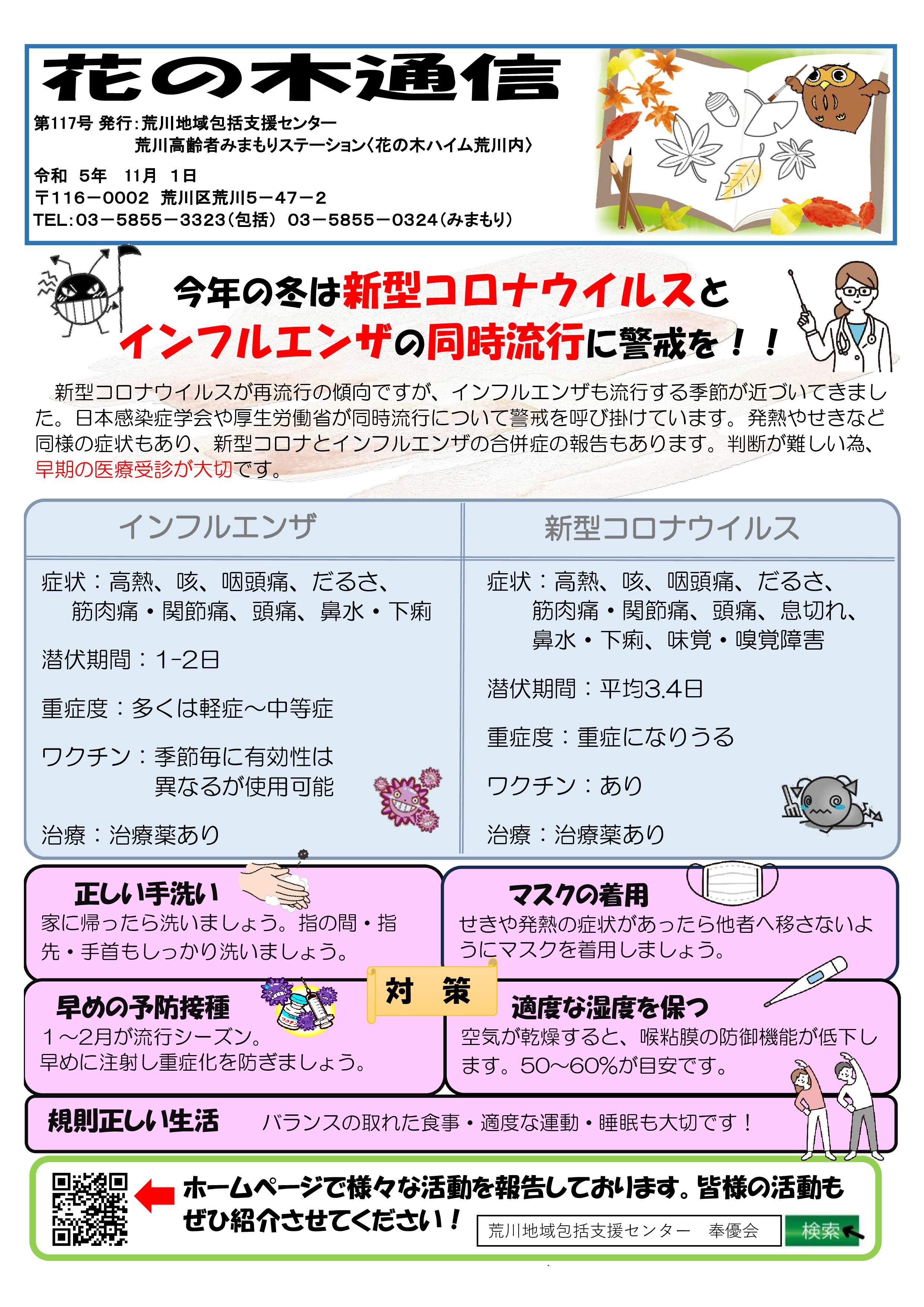 2023.11.02 お知らせ 【荒川包括】花の木通信を作成しました Tweet シェアする 花の木通信11月号を作成しましたのでお知らせします。 是非ご覧ください。 前の記事 2023.11.04 お知らせ 【荒川包括】荒高連支部会に伺いました 次の記事 2023.11.01 お知らせ 【荒川包括】介護フェアに参加しました。 一覧へ戻る