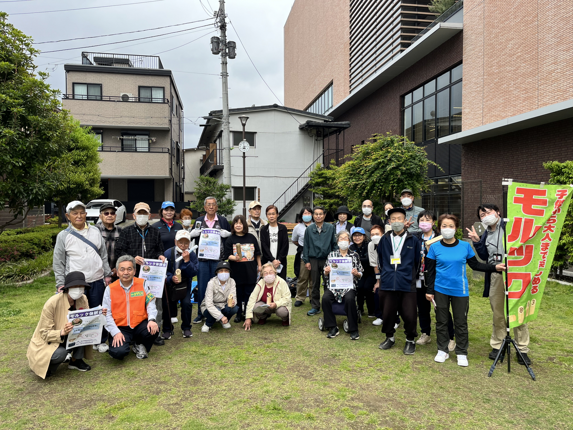 開催日は朝まで雨が続き、実施も危ぶまれましたが、連携している荒川区高齢者福祉課、スポーツ推進課、公園課、ゆいの森関係機関の皆様が会場の状態を確認して頂き、無事に開催することが出来ました。