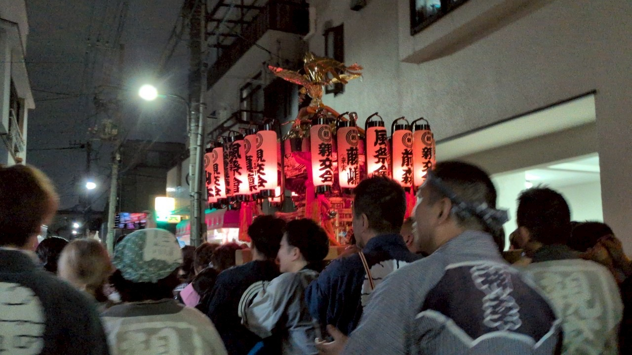 時間が経つと、提灯に灯かりがつき一層、神輿がきれいになります。