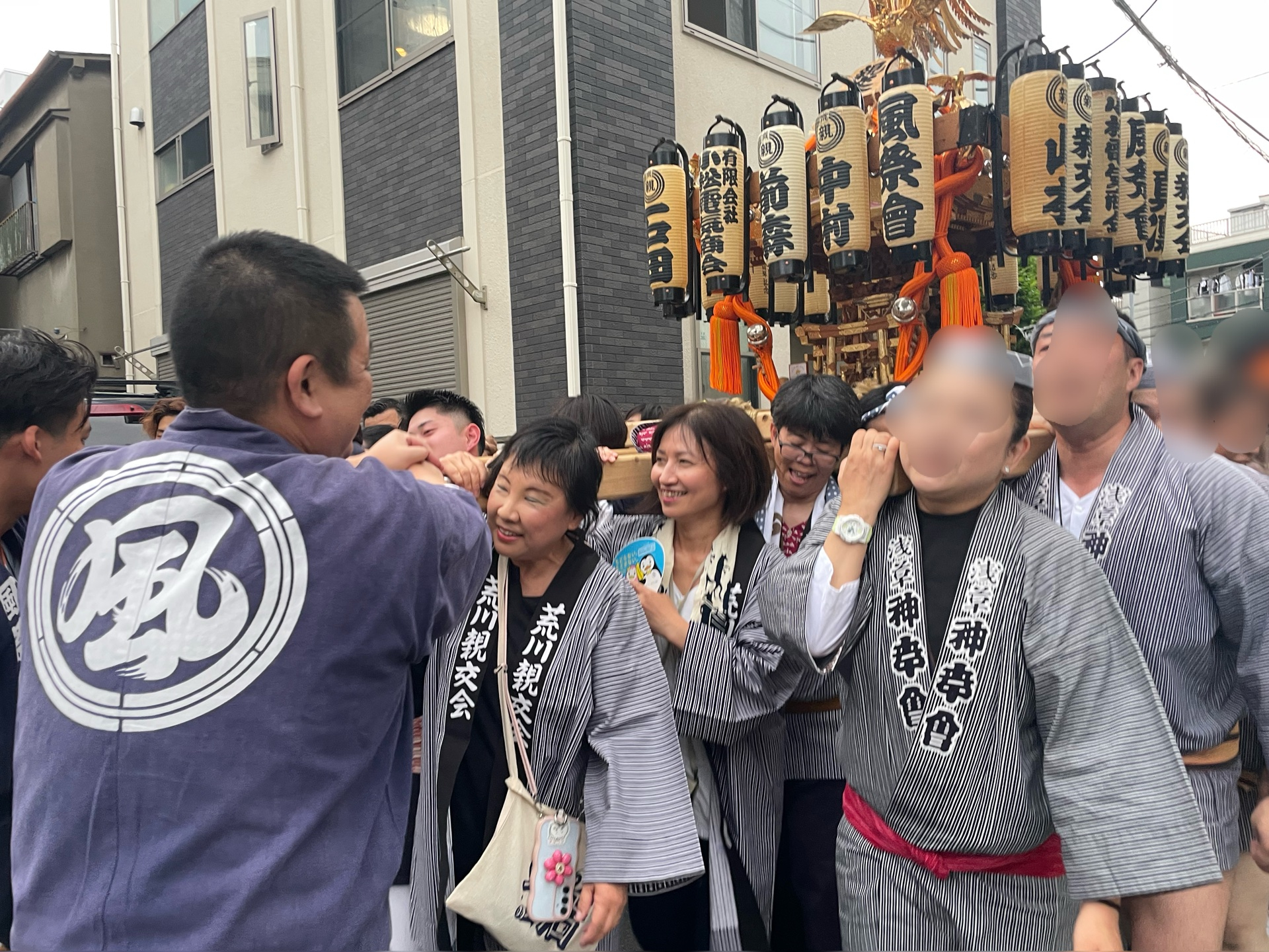 少し高い位置から眺める街の風景は、普段の仕事の時とは異なって見えました。また太鼓の音が鳴り響くと、家々から顔を出し、声援をくださったり見守ってくださったので、荒川の祭り魂を体感することが出来ました。