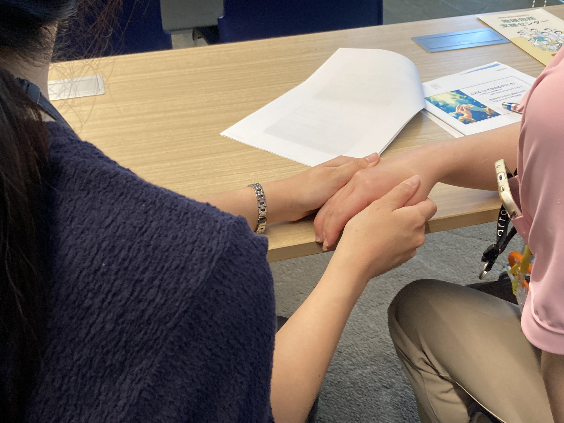 続いて、タッチケアについても学び、実践してみました。