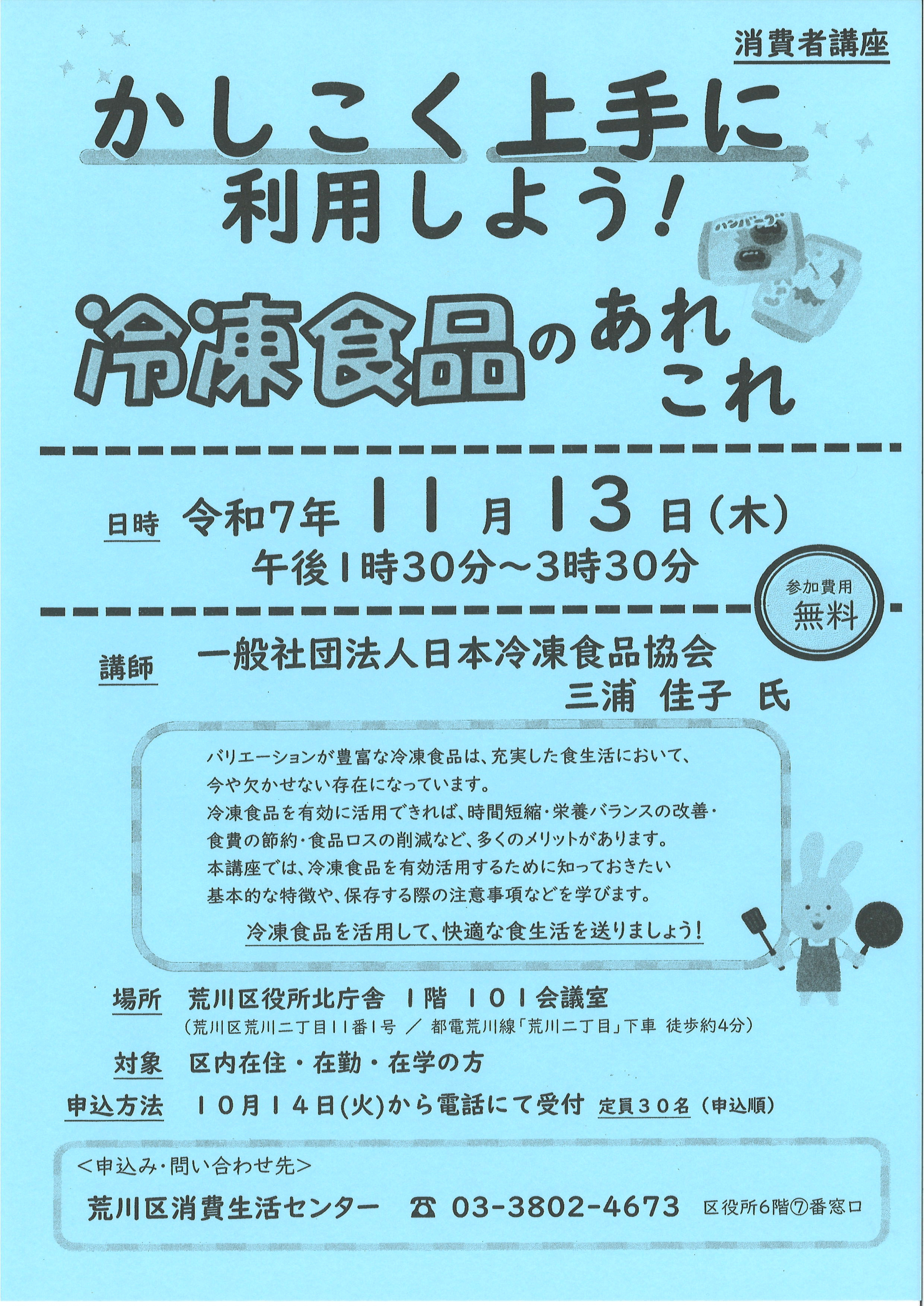 今回は、「冷凍食品のあれこれ」というテーマで講座が行われます。