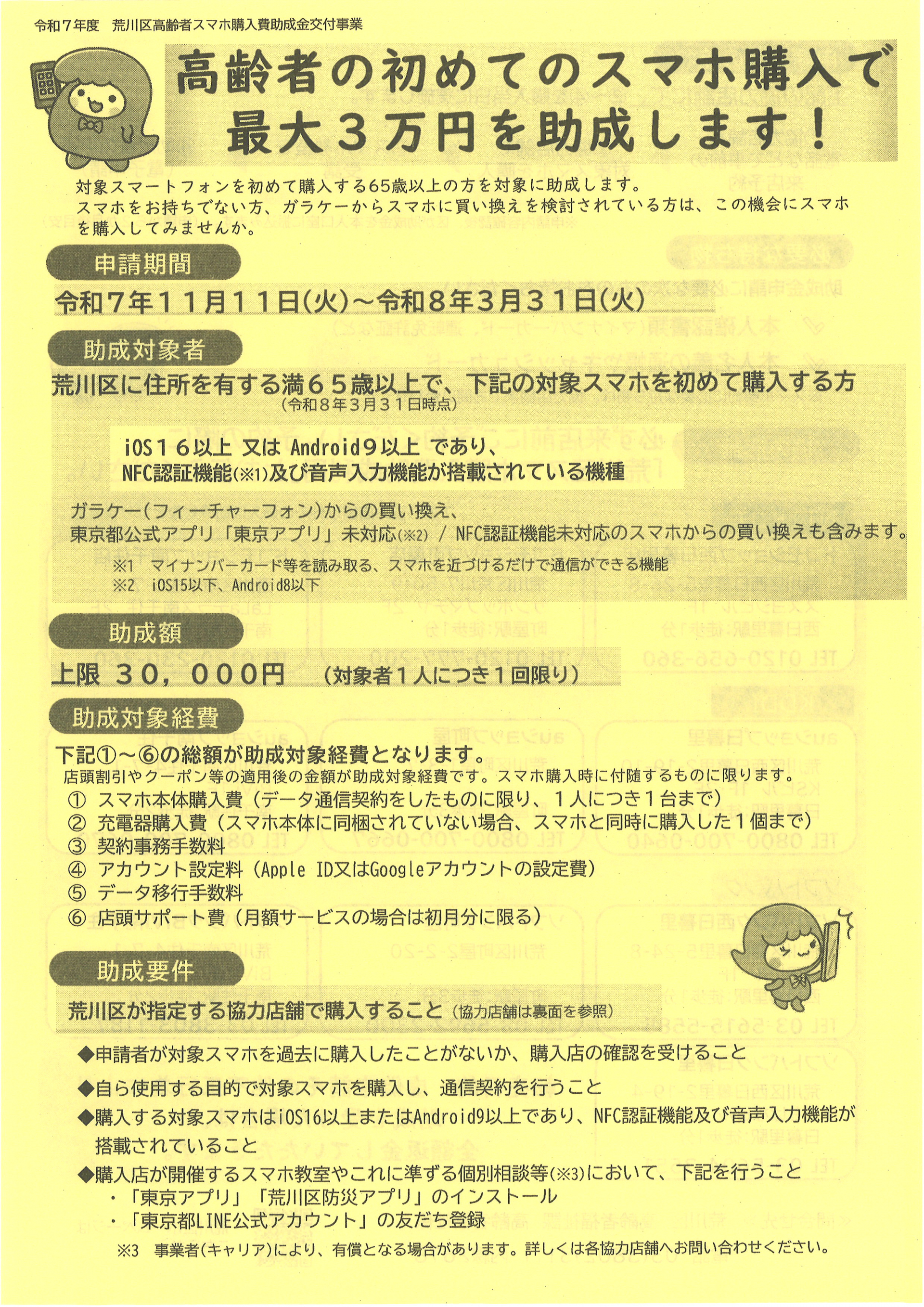 【荒川包括】荒川区高齢者スマホ購入費助成金交付事業が始まっています