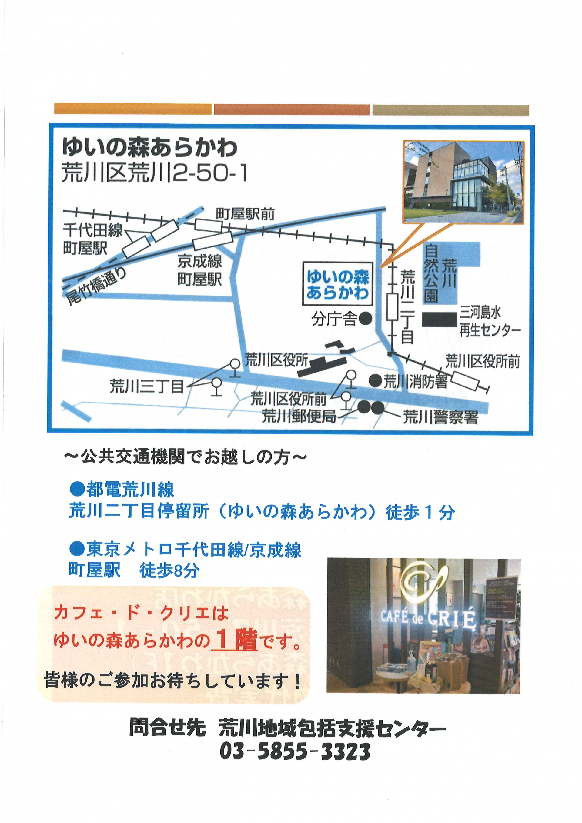 また、事前に確認したい事やご不明点がございましたら荒川地域包括支援センター(03-5855-3323)までご連絡ください。
