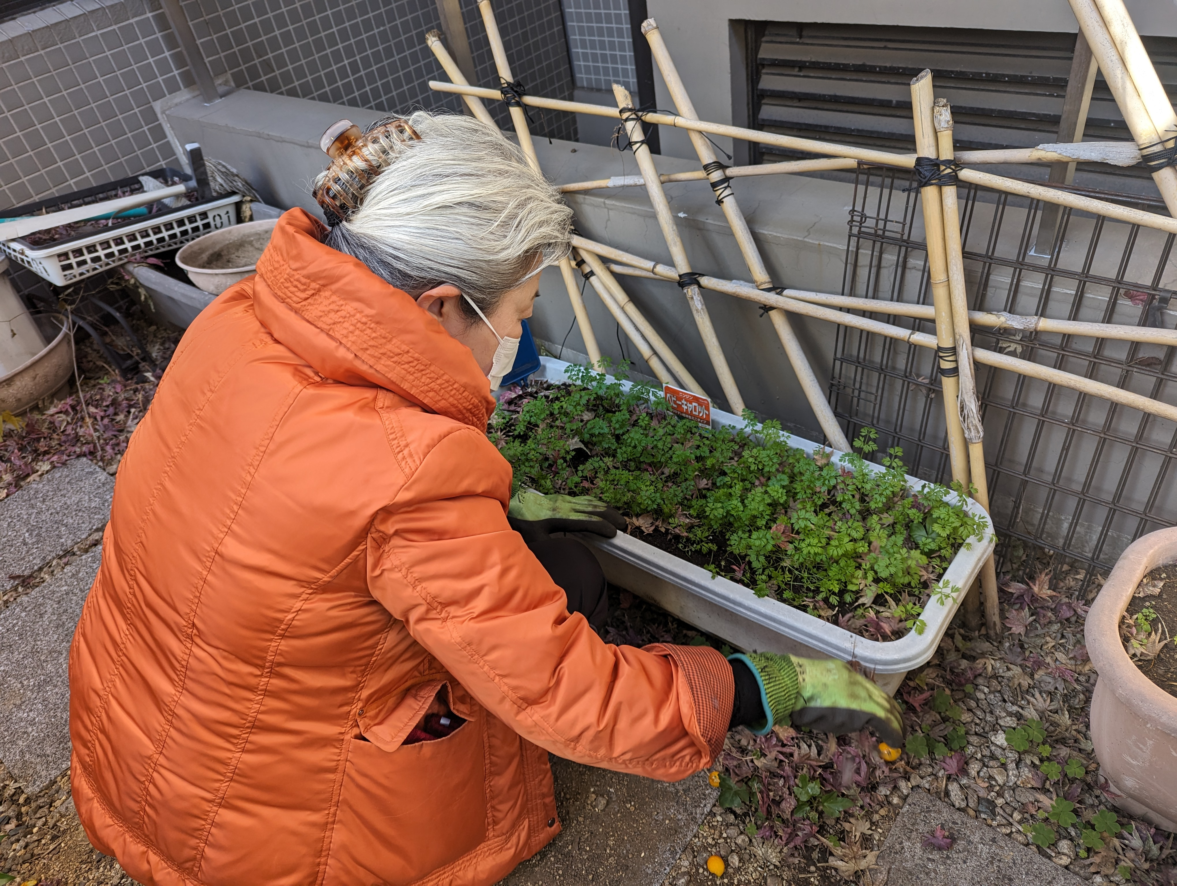 生活支援コーディネーターがプランター植えたベビーキャロットも、 たくさん芽が出ていました‼