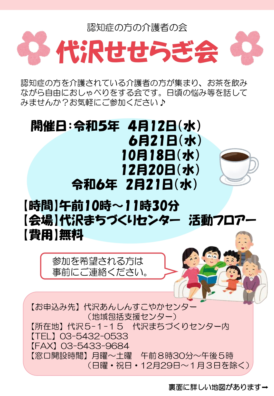 先日、認知症の方の介護者の会「代沢せせらぎ会」を開催しました。