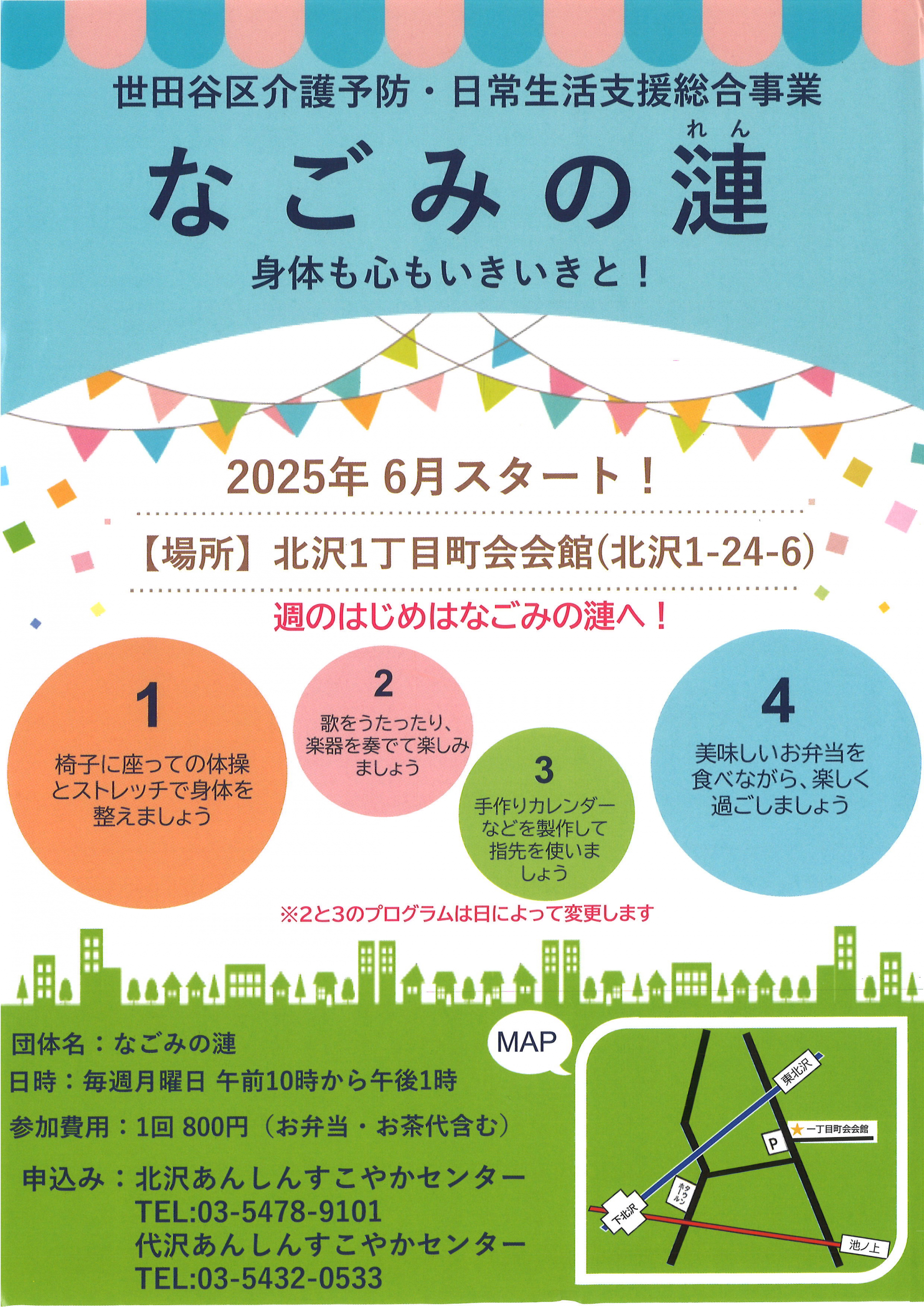 6月2日(月)からスタートしますので、ご興味ある方はぜひ代沢あんしんすこやかセンターまで