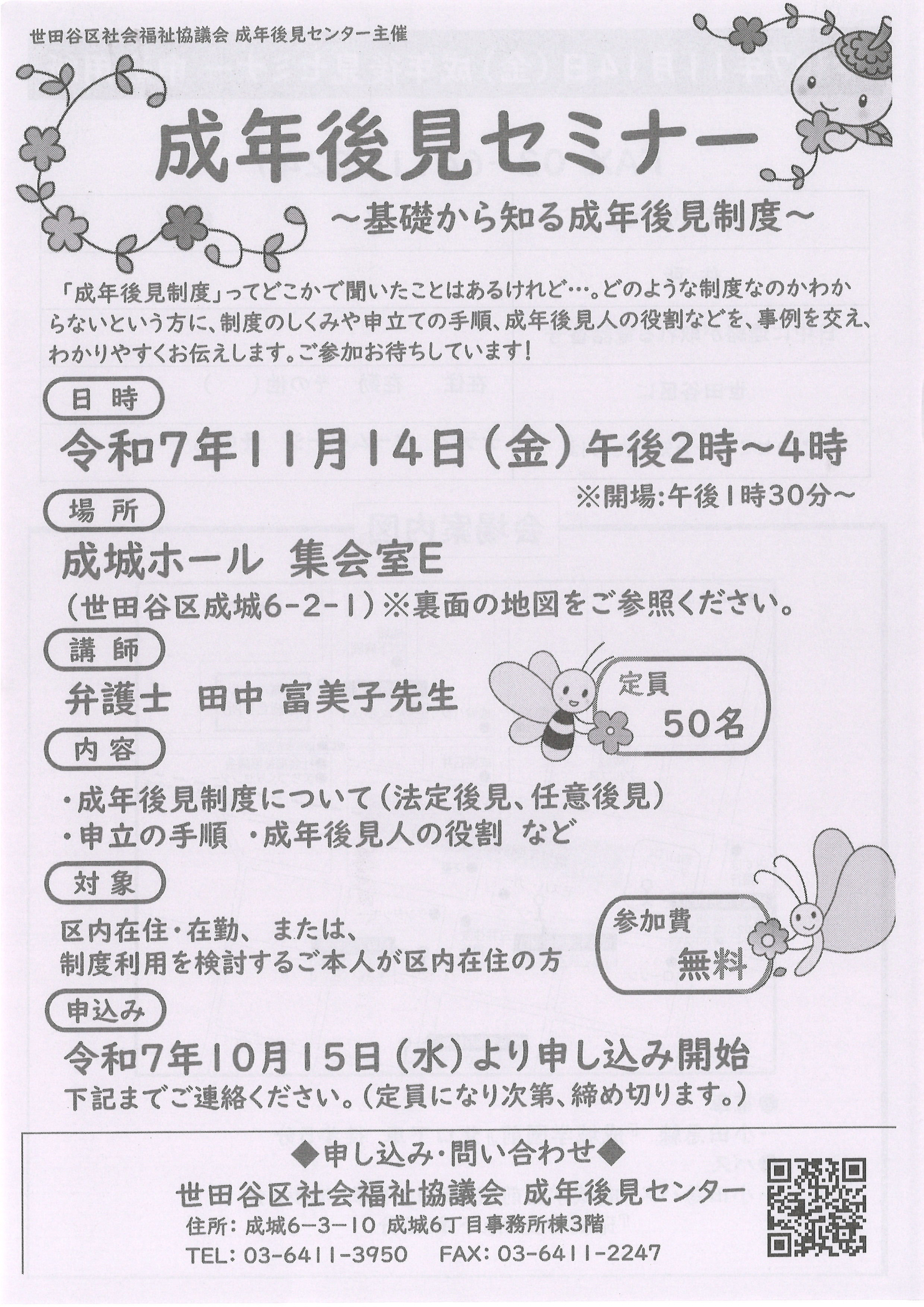 令和7年11月14日(金)午後2時~4時に、世田谷区社会福祉協議会 成年後見センター主催の