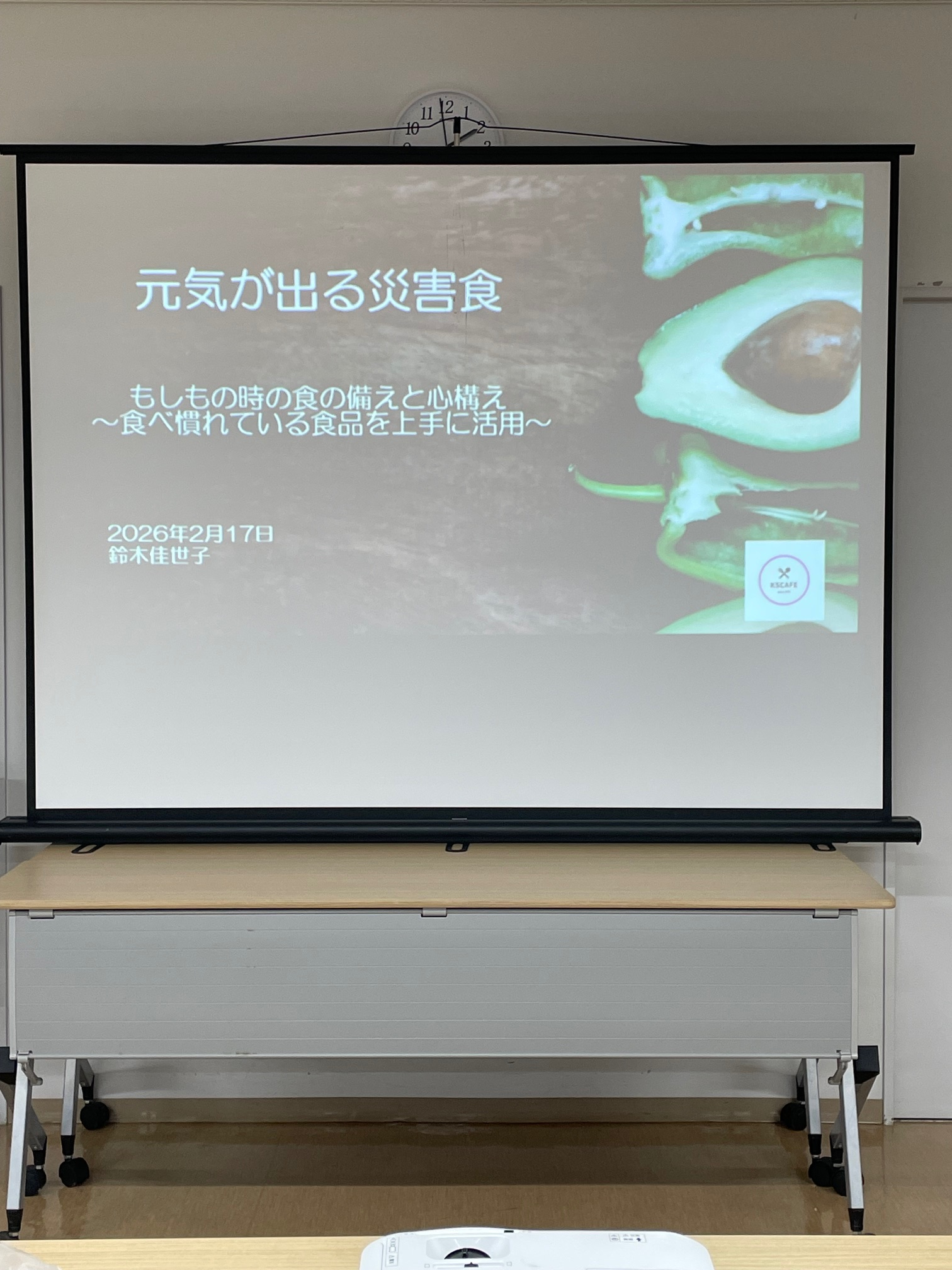 料理家・防災クッキングアドバイザーでもある講師の鈴木佳世子氏より、災害時の食事に関してのお話や、自宅にある乾物(切り干し大根やひじき等)を使って簡単に出来る酢の物、スープの紹介等がありました。