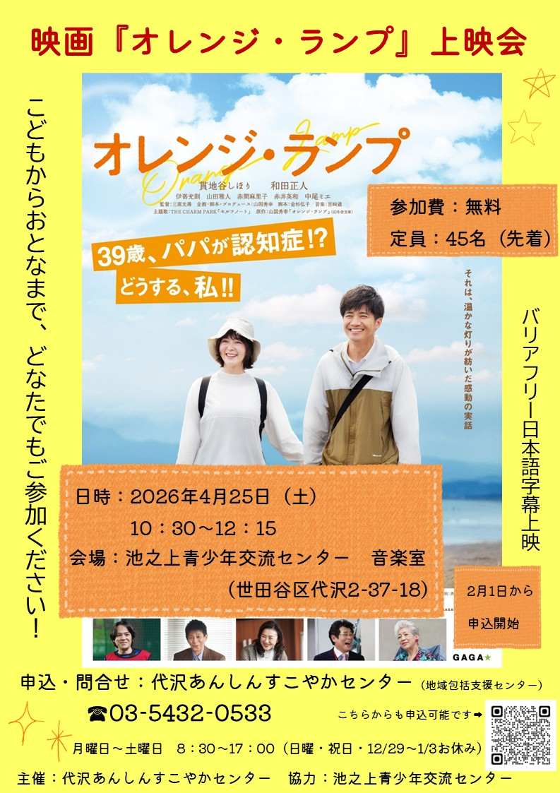 【代沢包括】映画『オレンジ・ランプ』上映会 開催します