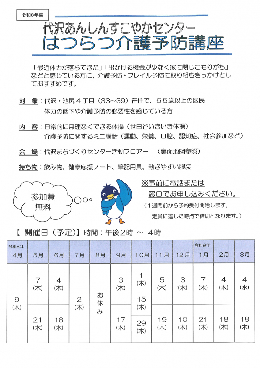 【代沢包括】次年度の『はつらつ介護予防講座』ご案内