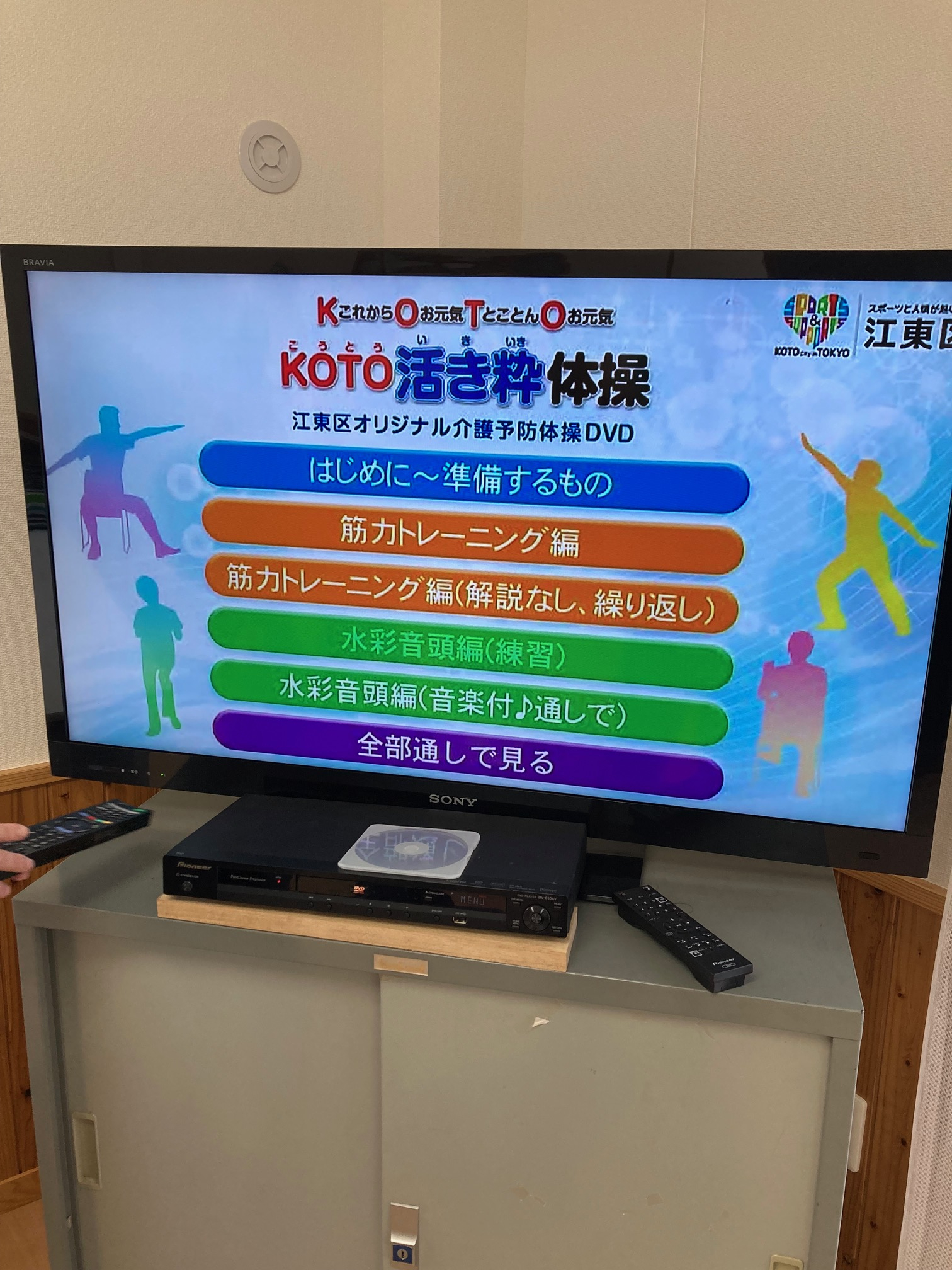 江東活き粋体操は、映像を見ながらやっています。初めてでも慣れなくても、お手本を見ながらなんとなく身体を動かすと、気持ちよくなれますよ。