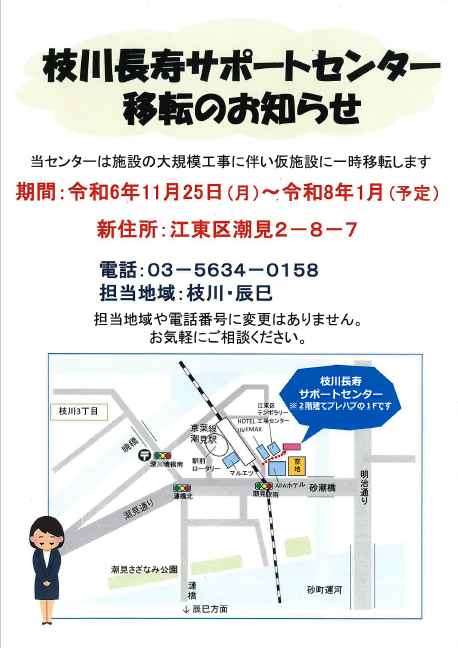 枝川長寿サポートセンター移転(令和6年11月~)のお知らせ【枝川包括】