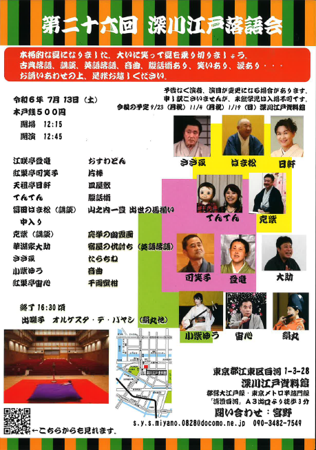 2024.06.18 お知らせ 第26回 深川江戸落語会【枝川包括】 Tweet シェアする 深川江戸落語会のお知らせです。 詳しくは下記案内をご覧ください。 前の記事 2024.06.18 お知らせ 能登半島地震により江東区に避難されている方へ【枝川包括】 次の記事 2024.06.18 お知らせ 実習生さんと新入職員を交えてインテークのロールプレーを行いました【枝川包括】 一覧へ戻る