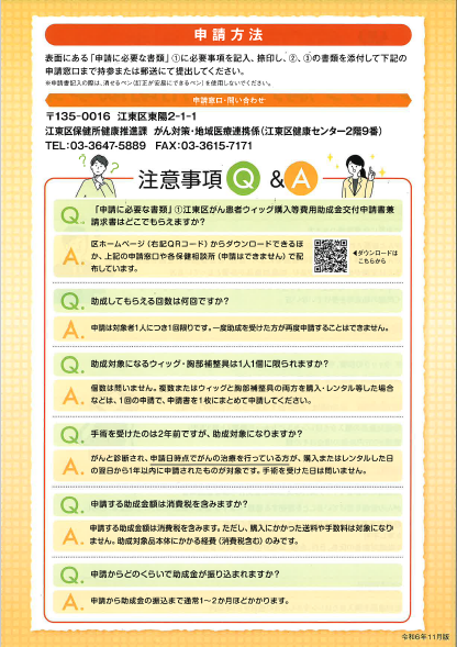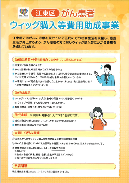江東区では、がんの治療を受けている区民の方のウィッグや胸部補正具の購入にかかる費用を助成しています。