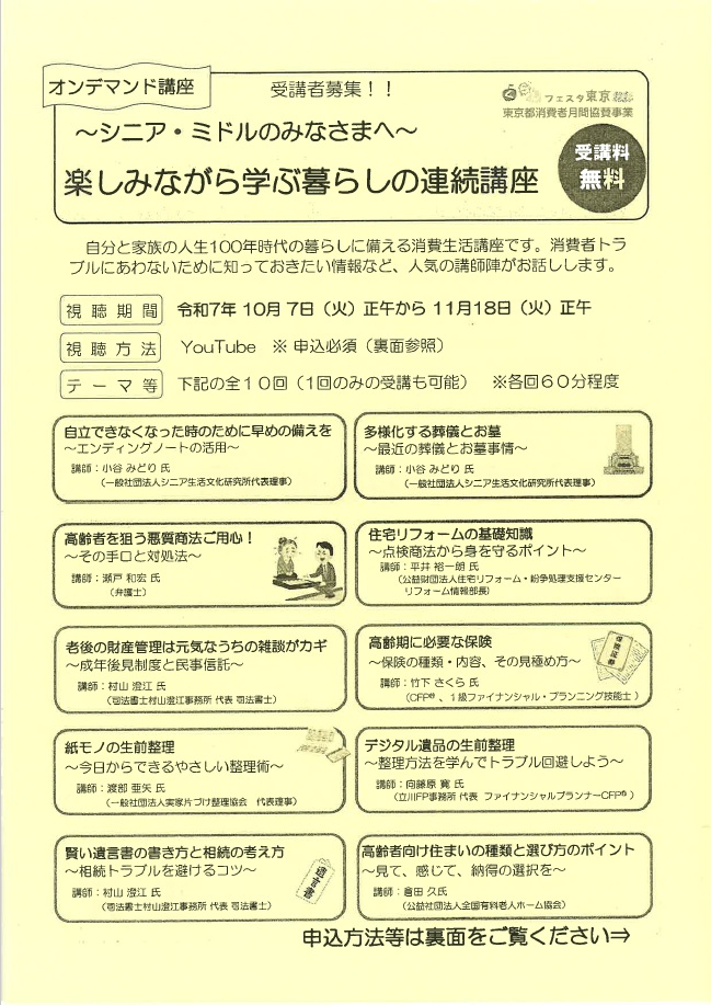 生前整理やお墓、消費者被害や住まいのことまで、気になるテーマがたくさんあります。