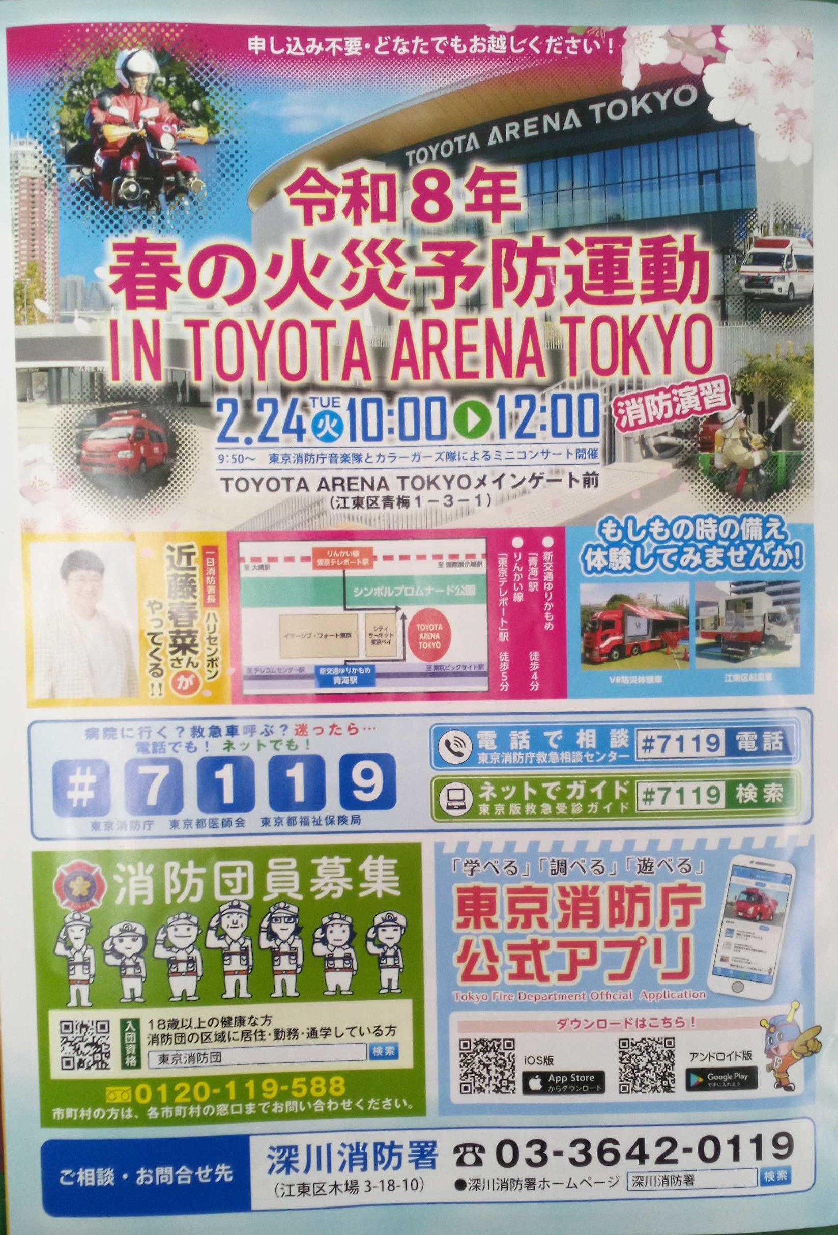3/1~3/7の「春の火災予防運動」週間を前に、火災予防のイベントが行われます。消防演習や、ハリセンボン・近藤春菜さんもイベントを盛り上げに来られるようです(*^^*)