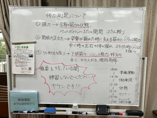 体力測定後は、世田谷いきいき体操の一部と口腔体操を実施しています。