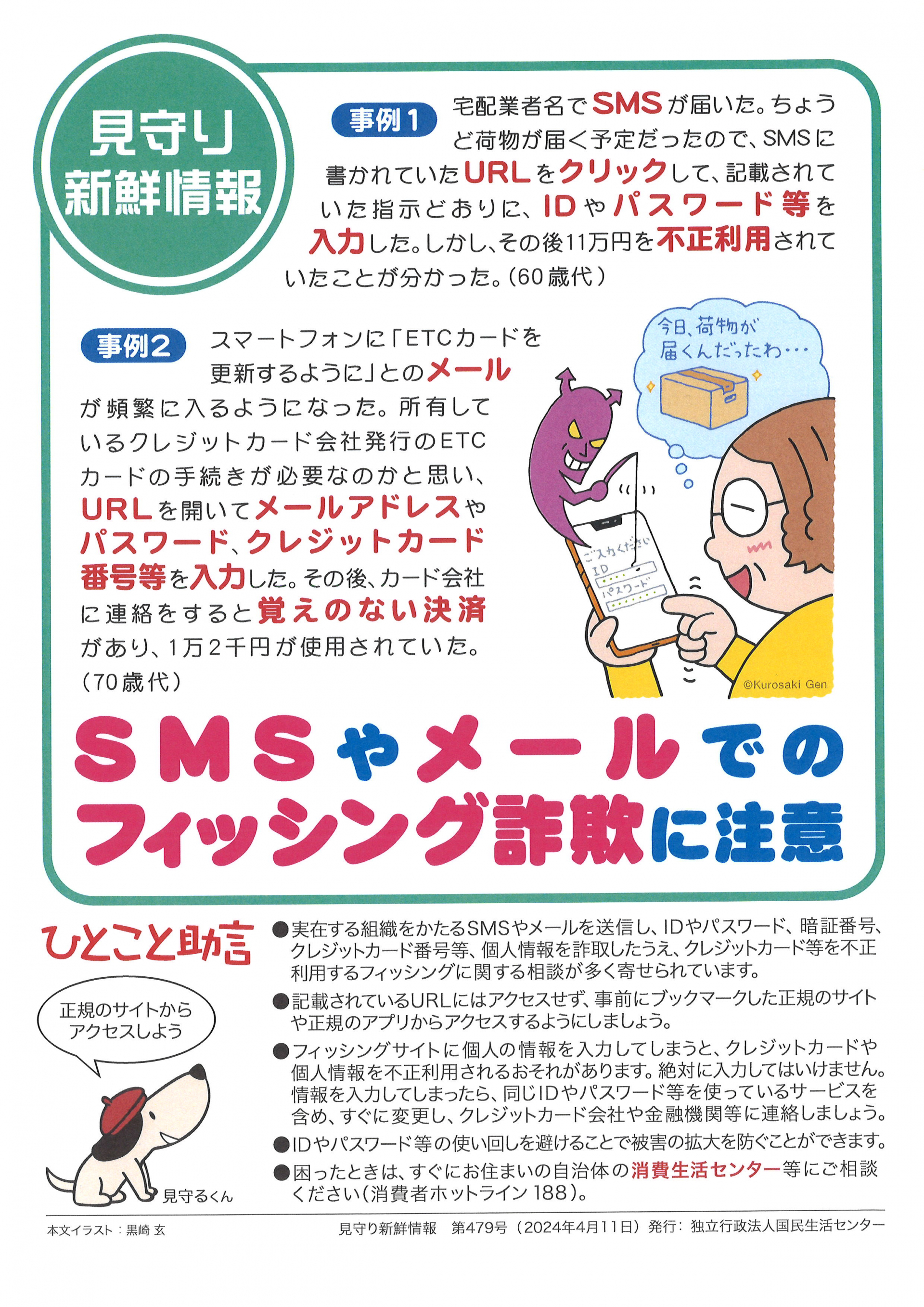 個人情報を詐取したうえ、クレジットカード等を不正利用するフィッシングに関する相談が