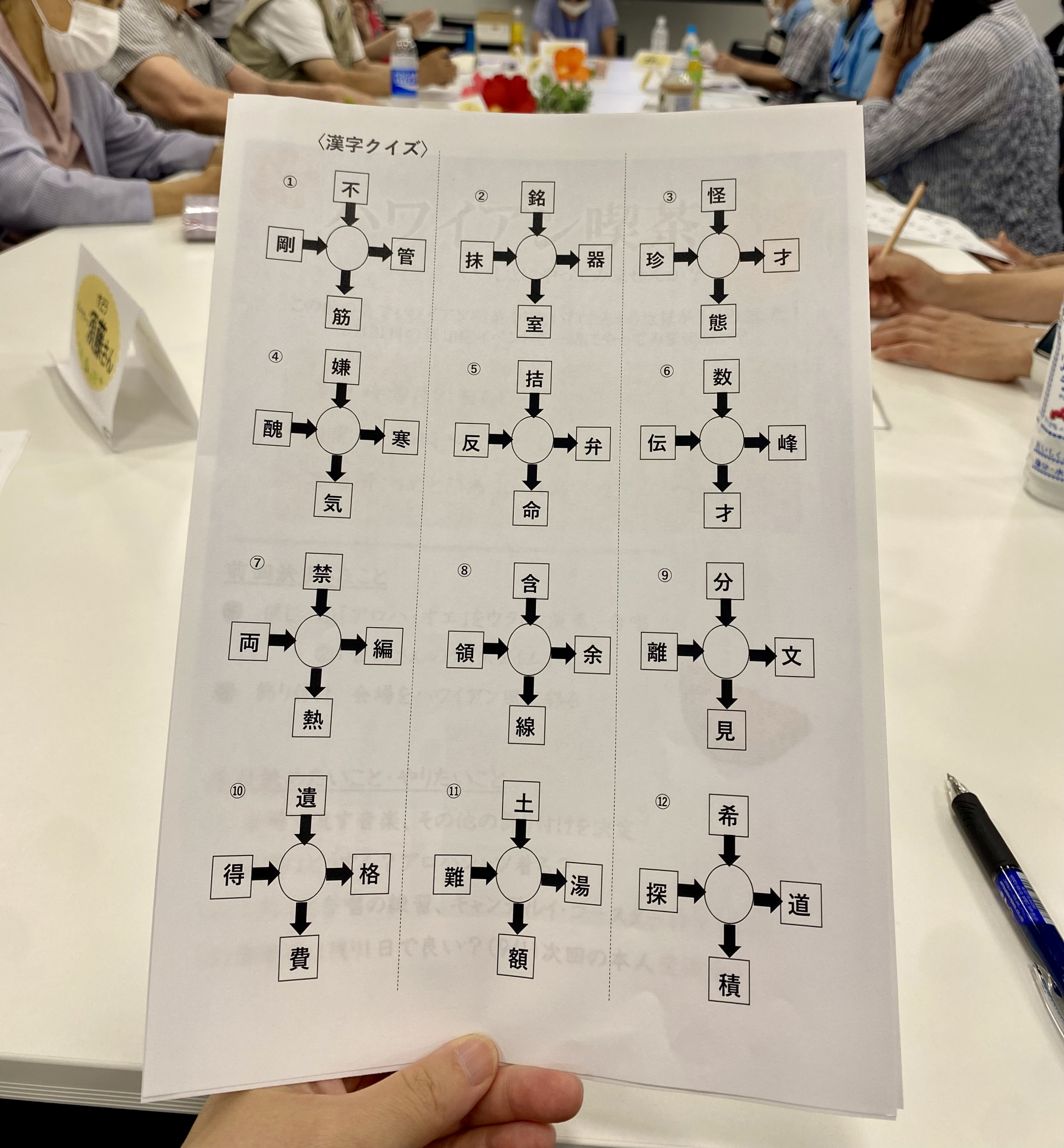 最初に自己紹介を行い、恒例の漢字クイズ大会で参加者の皆さんの緊張が和らぎました。(今回も難問でした;;)
