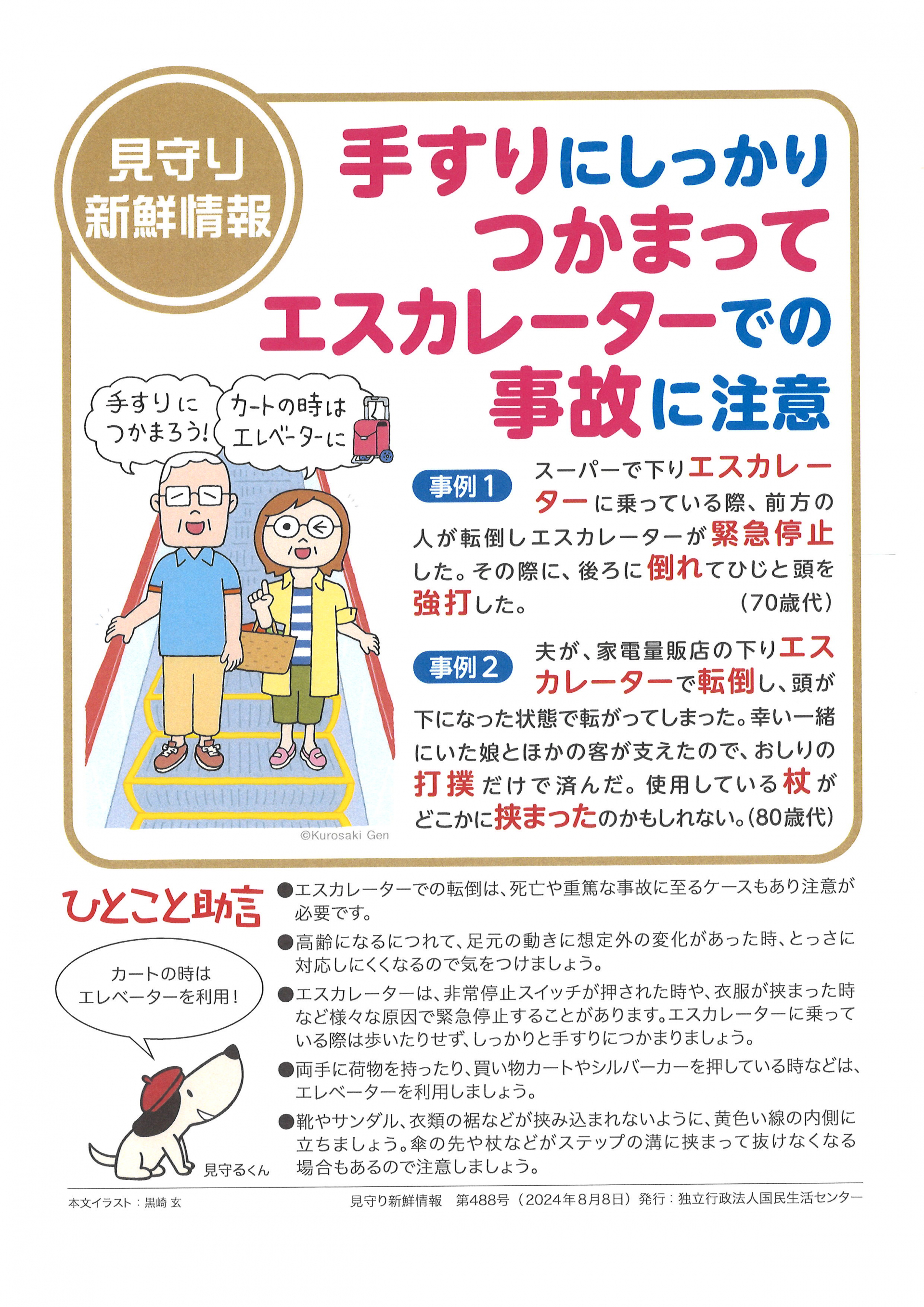 歩行器や、買物カートでの移動の際、エスカレーターに乗ることも多いかと思います。