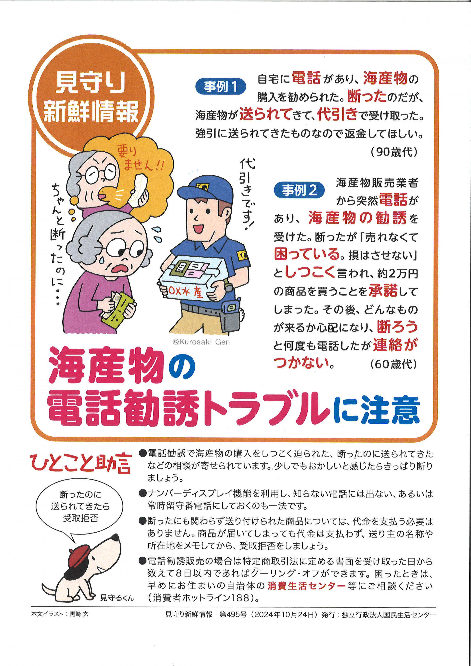 【深沢包括】海産物の電話勧誘トラブルに注意