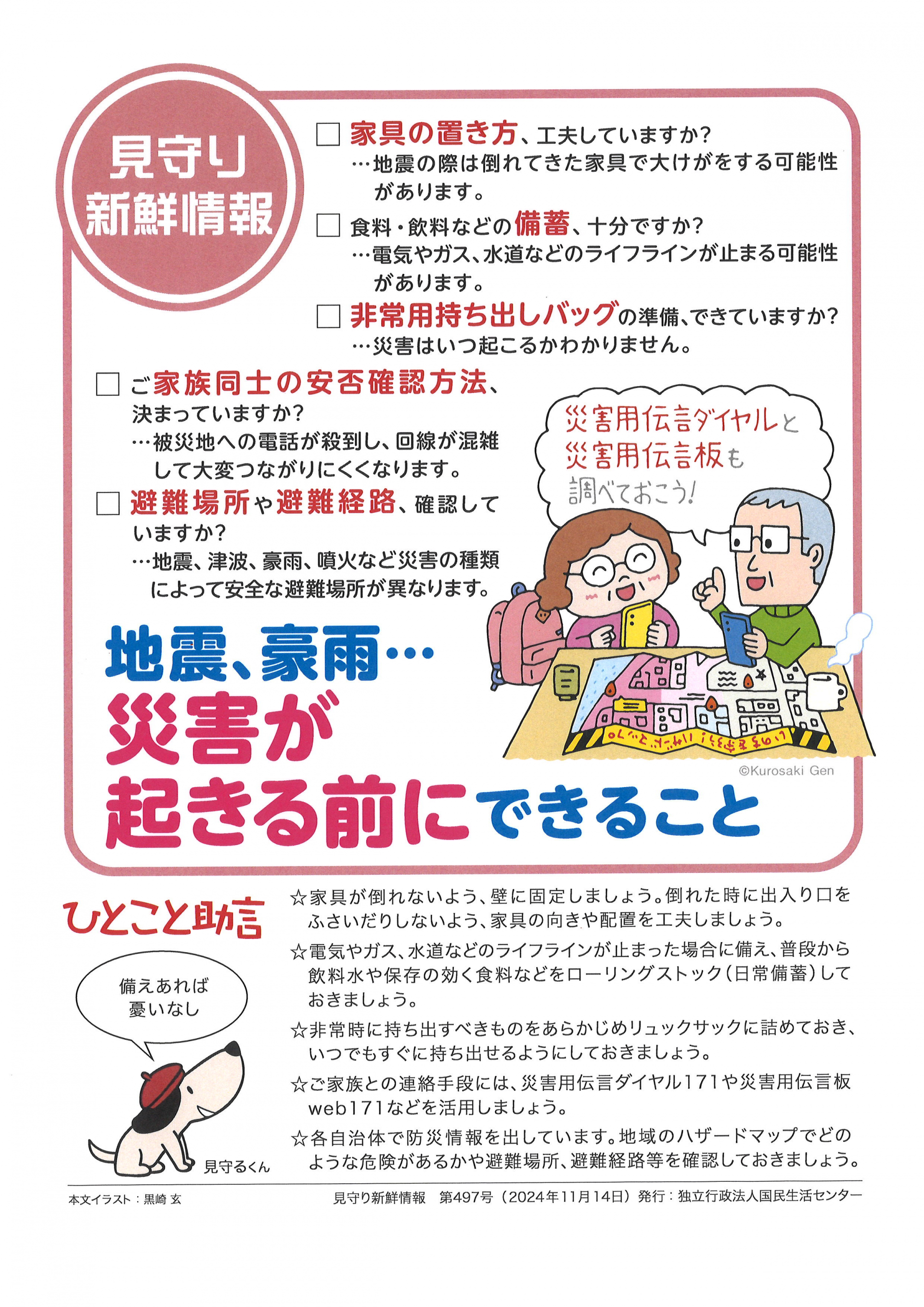 落ち着いて準備できるときに、心配が少しでも軽減するように備えてみてはいかがでしょうか。【Y.K】