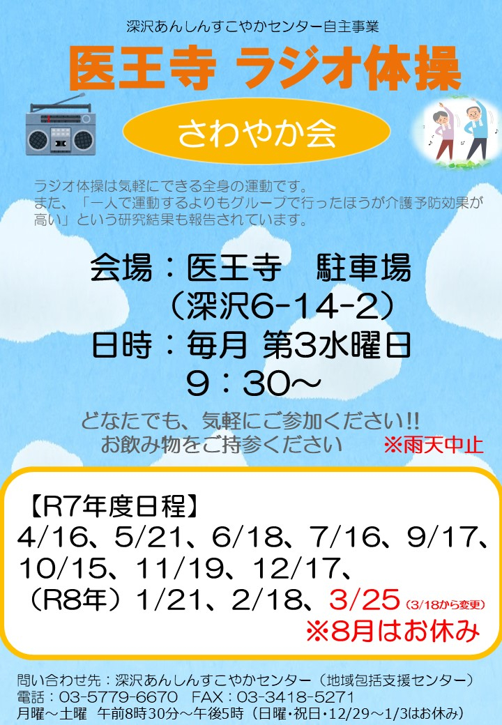 医王寺でのラジオ体操ですが、4月以降も毎月第3水曜日 9:30~で継続します!