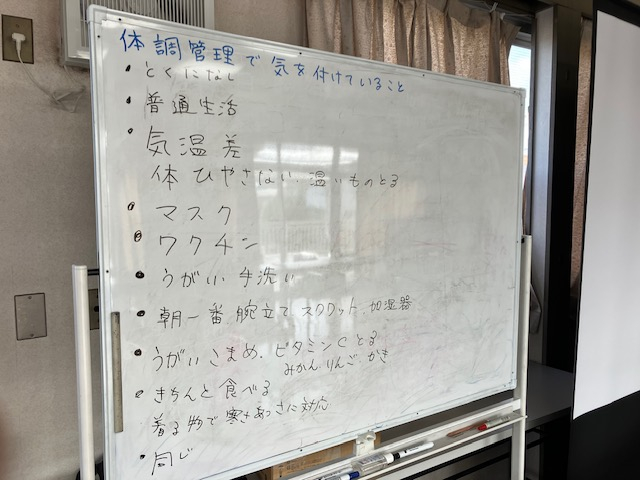 皆さん、普段から当たり前に「手洗い・うがい」「マスクをつける」「予防注射をうつ」「体を冷やさない」等の対策をされていました。流石です!