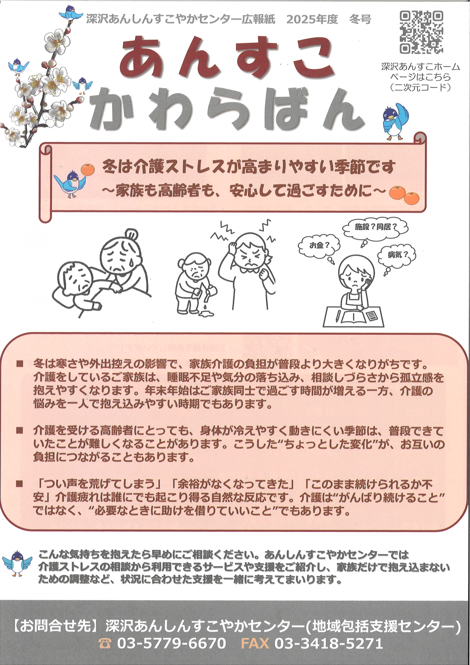冬号の「あんすこかわらばん」を発行いたしました。冬は心身の不調や介護負担が重なりやすい季節です。