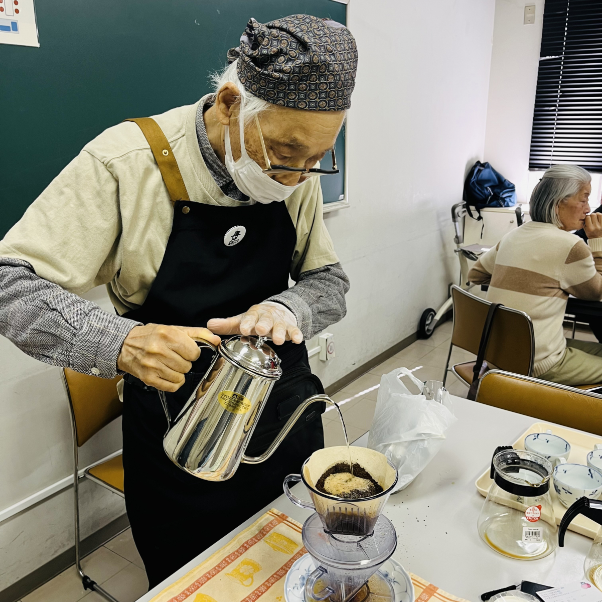 今月のカフェには、70年以上もコーヒーの提供をしているバリスタをお呼びして、皆様にコーヒーのおもてなしをしていただきました!!なんと御年96歳!実は有名な方なのです!