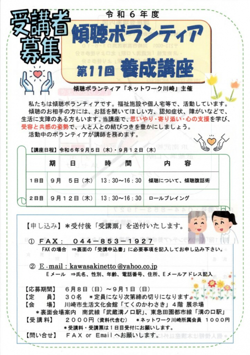 2024.08.15 【久末居宅】かわさき多摩川マラソン2024。 お知らせ 2024.08.15 【久末居宅】川崎市高津区久末の史跡。 お知らせ 2024.08.14 【久末居宅】その申込み、定期購入ではありませんか?最終確認画面チェックリスト お知らせ 2024.08.13 【久末居宅】手すりにしっかりつかまって エスカレーターでの事故に注意 お知らせ 2024.08.09 【久末居宅】おくやみガイドブック お知らせ 2024.08.08 【久末居宅】「アルツハイマーデー in かわさき 安心して認知症になれるまちに向けて」を開催します お知らせ 2024.08.07 【久末居宅】手話入門講習会 お知らせ 2024.08.06 【久末居宅】熱中症にご注意ください! お知らせ 2024.08.05 【久末居宅】ケアマネジャー募集中 お知らせ 2024.08.02 【久末居宅】ケアプランデータ連携システム導入しています! お知らせ 2024.08.01 【久末居宅】高齢者虐待の研修に参加しました 活動報告 2024.07.29 【久末居宅】木造住宅耐震無料相談会。 お知らせ 2024.07.26 【久末居宅】香辛子。 お知らせ 2024.07.25 【久末居宅】電話リレーサービス。 お知らせ 2024.07.25 【久末居宅】第46回 川崎市ろう者のつどい。 お知らせ 1 … 14 15 16 17 18 … 28
