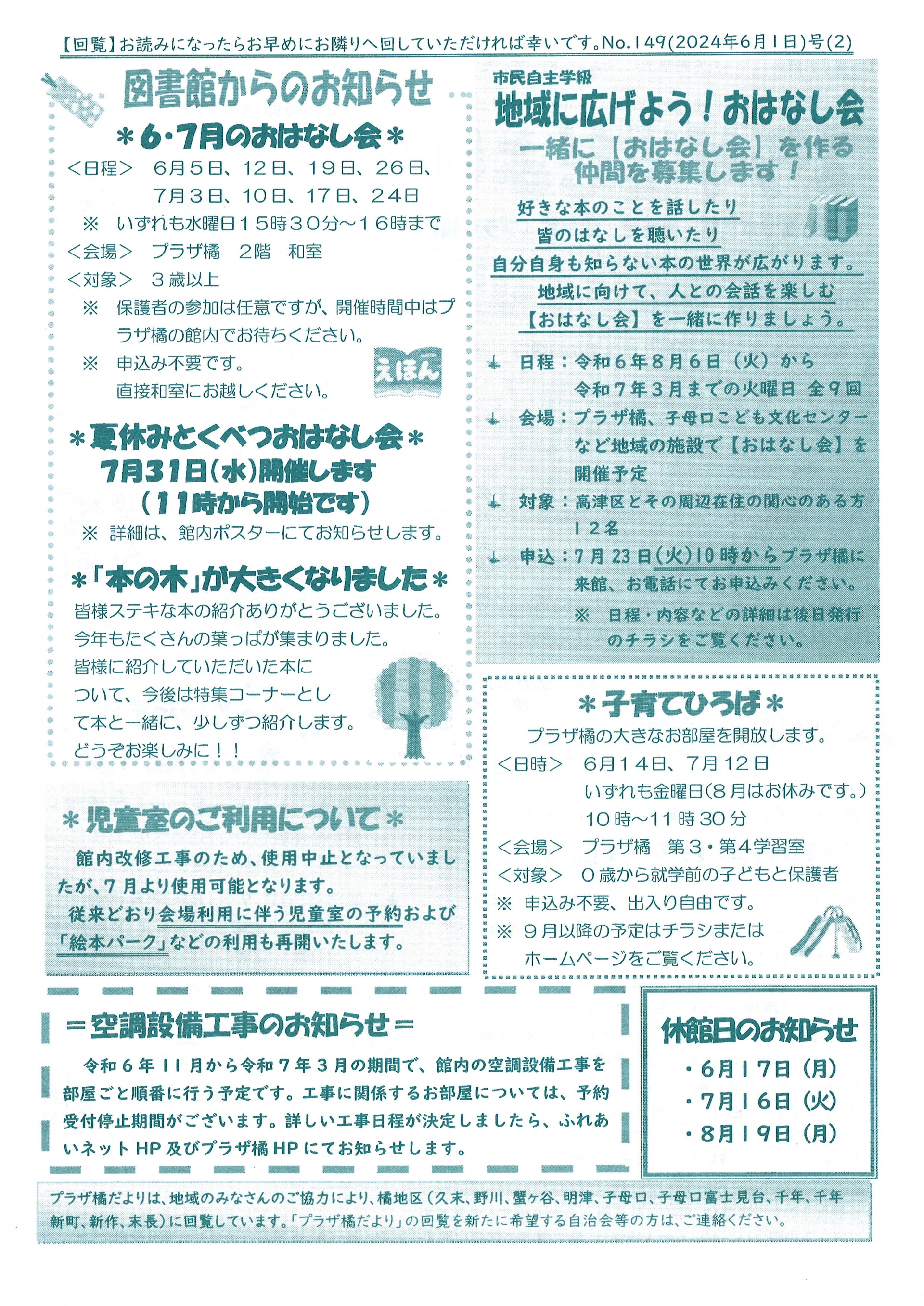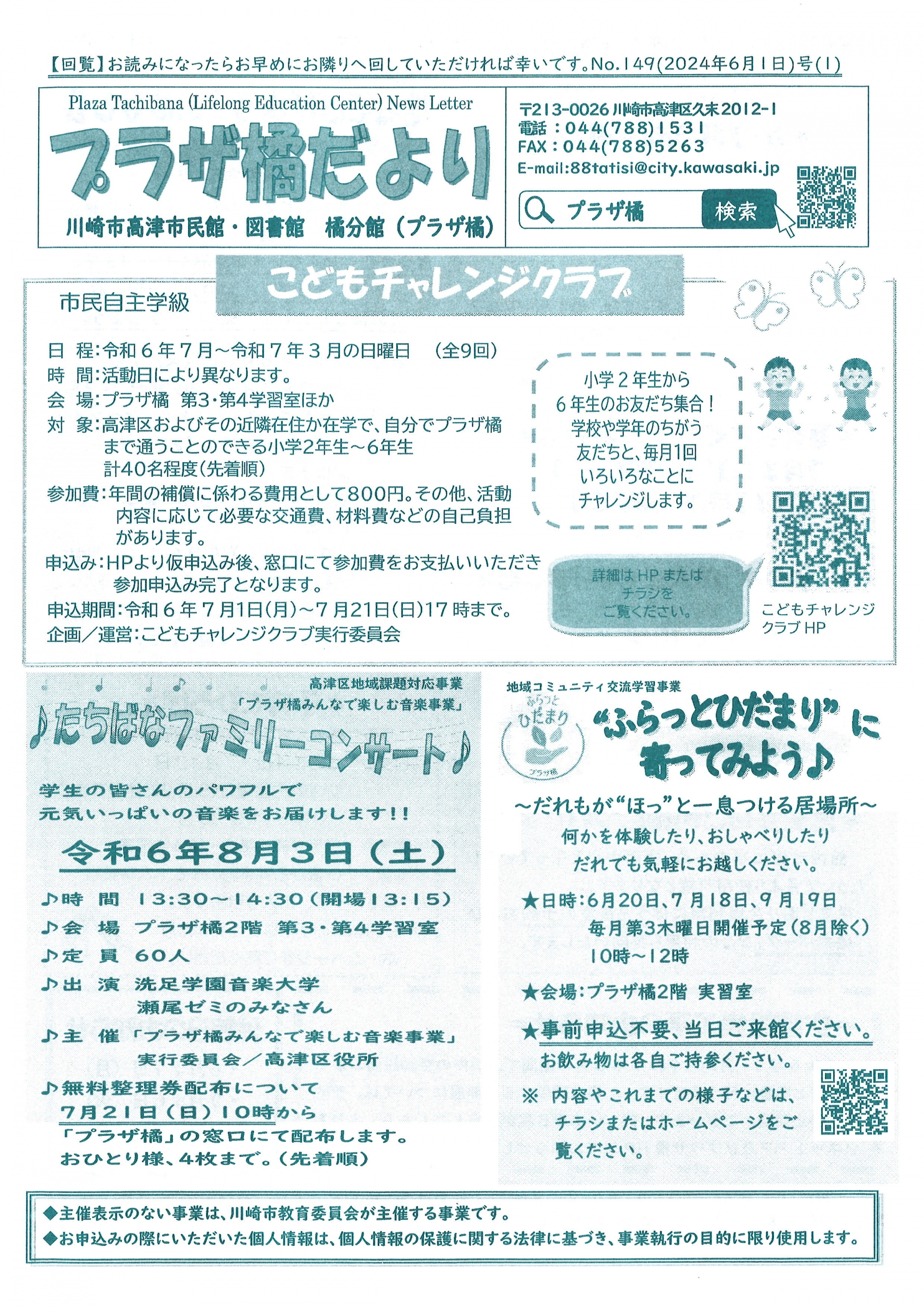 2024.06.24 お知らせ 【久末居宅】プラザ橘だより 6月号 Tweet シェアする プラザ橘だより 6月号です。 前の記事 2024.06.24 お知らせ 【久末居宅】高津市民館だより 6月号。 次の記事 2024.06.21 お知らせ 【久末居宅】解約手続きができない!? 無人スポーツジムのトラブル 一覧へ戻る