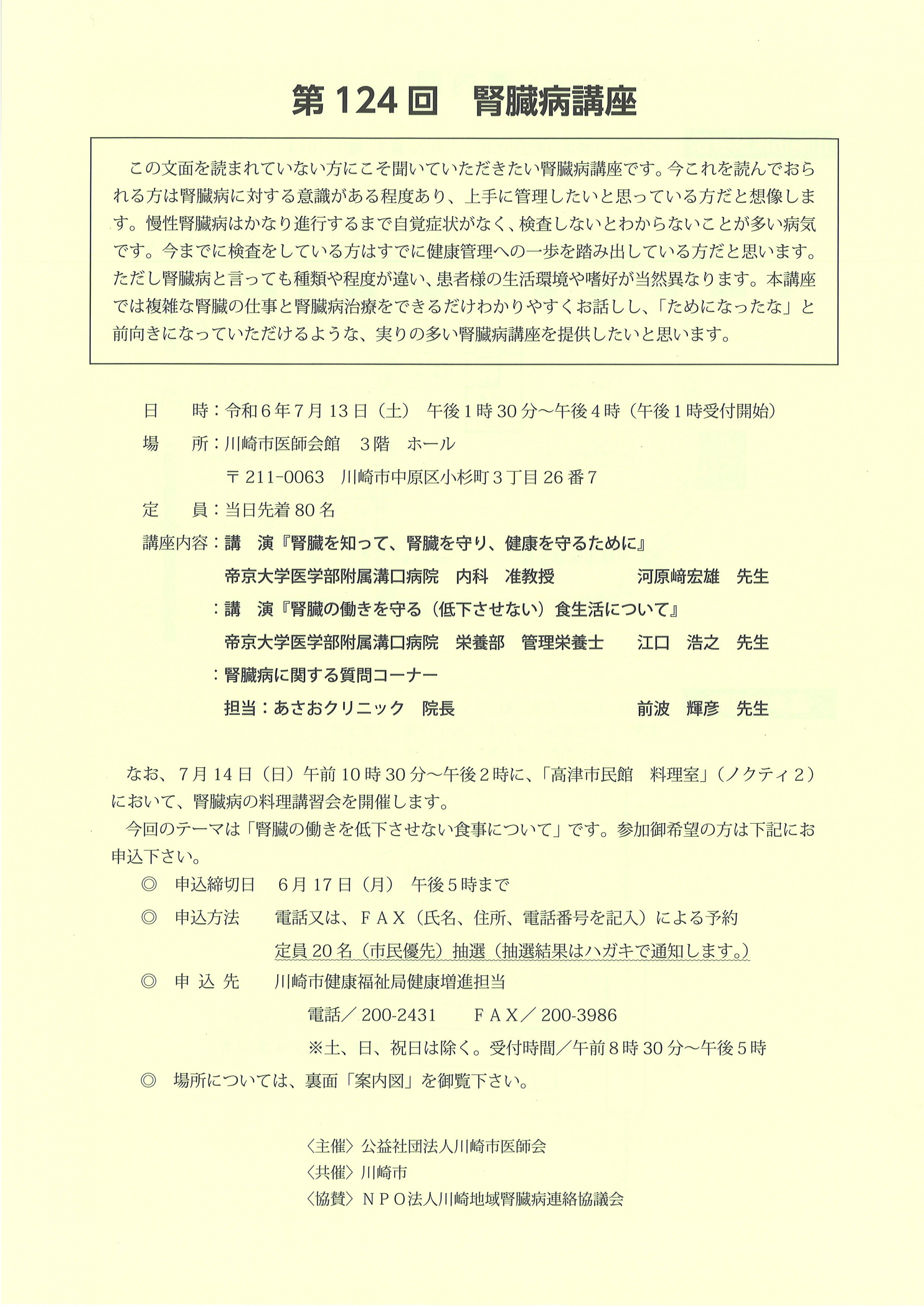 2024.06.27 お知らせ 【久末居宅】第124回 腎臓病講座 Tweet シェアする 講座内容は「腎臓を知って、腎臓を守り、健康を守るために」です。 前の記事 2024.06.27 お知らせ 【久末居宅】国際交流センターだより 次の記事 2024.06.27 お知らせ 【久末居宅】みんなの健康塾ちゃんねる 6月号 一覧へ戻る