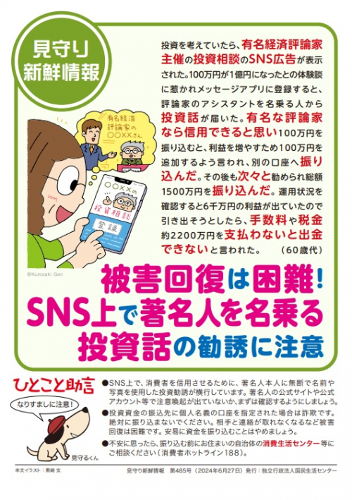 不安に思った場合にはすぐに消費生活センター等に相談してください。