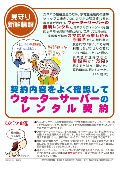 国民生活センターよりウォーターサーバーレンタル契約についての注意喚起です。