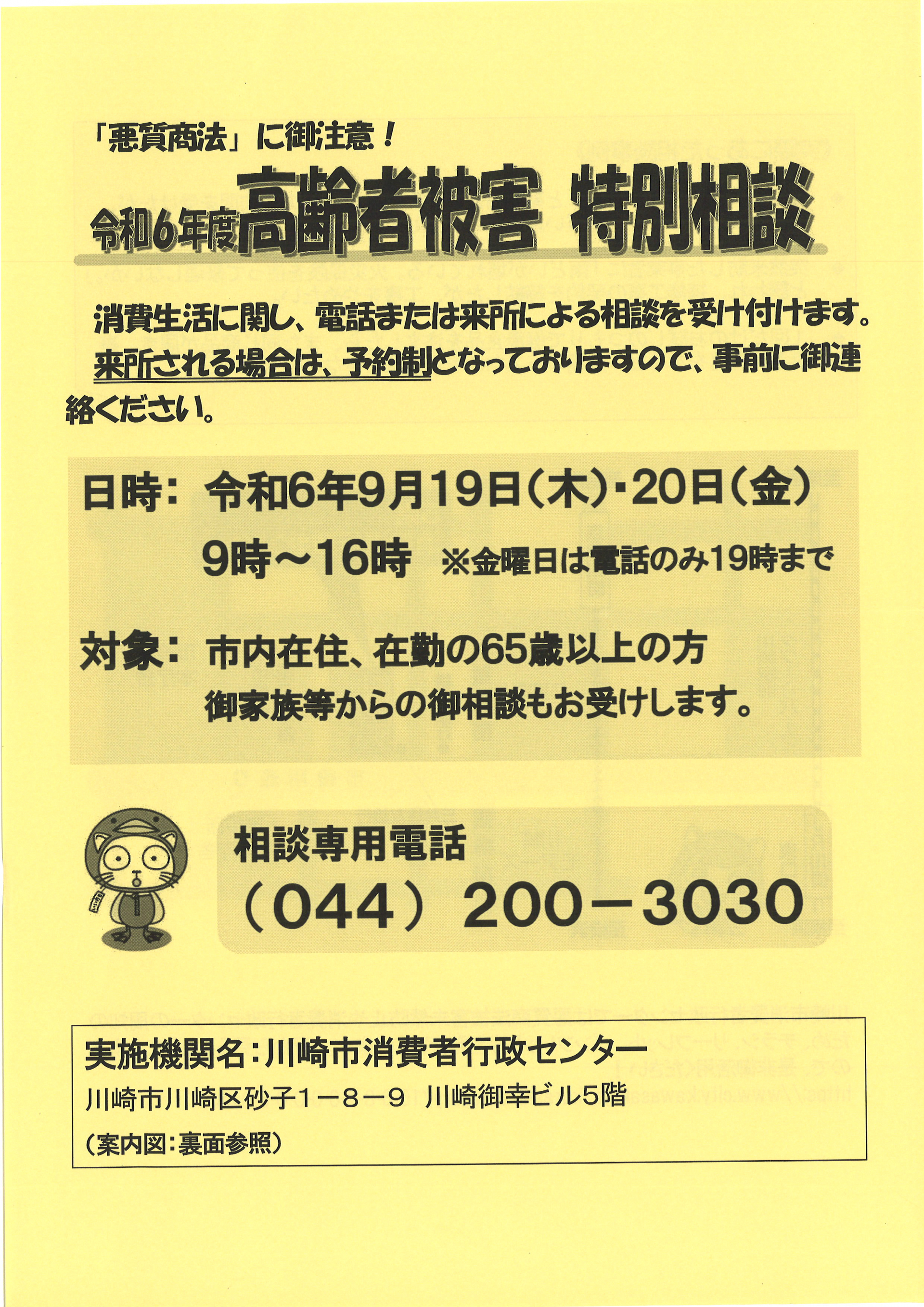 2024.09.18 お知らせ 【久末居宅】令和6年度 高齢者被害 特別相談 Tweet シェアする 当事業所近隣でも詐欺被害が発生しています。 ご家族等からのご相談もお受けします。 【久末居宅 S】 前の記事 2024.09.18 お知らせ 【久末居宅】住まいの相談会・展示会のご案内 次の記事 2024.09.12 お知らせ 【久末居宅】アレルギー疾患における災害時の備え 一覧へ戻る