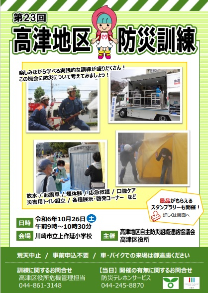 高津区より第23回高津地区防災訓練を開催のお知らせです。