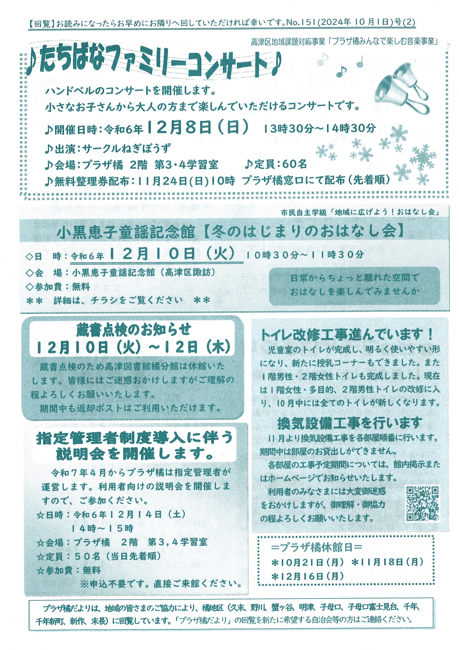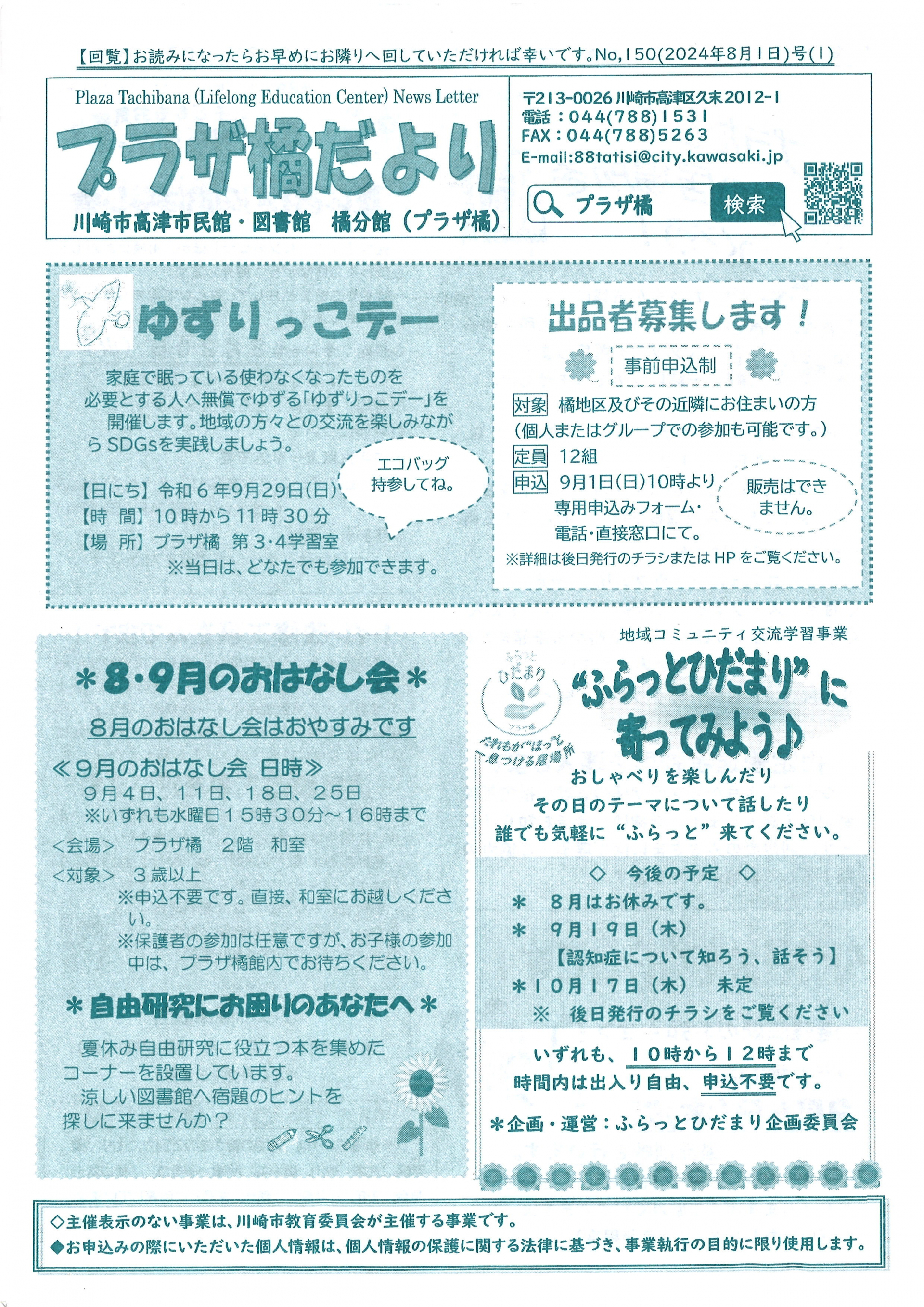 2024.10.11 お知らせ 【久末居宅】プラザ橘だより 10月1日号 Tweet シェアする 11月2日(土)プラザ橘まつりが開催されます! 「プラザ橘」は老若男女が集える貴重な場となっています。 【久末居宅 S】 前の記事 2024.10.11 お知らせ 【久末居宅】みんなの健康塾ちゃんねる 10月号 次の記事 2024.10.10 お知らせ 【久末居宅】健康診断 一覧へ戻る