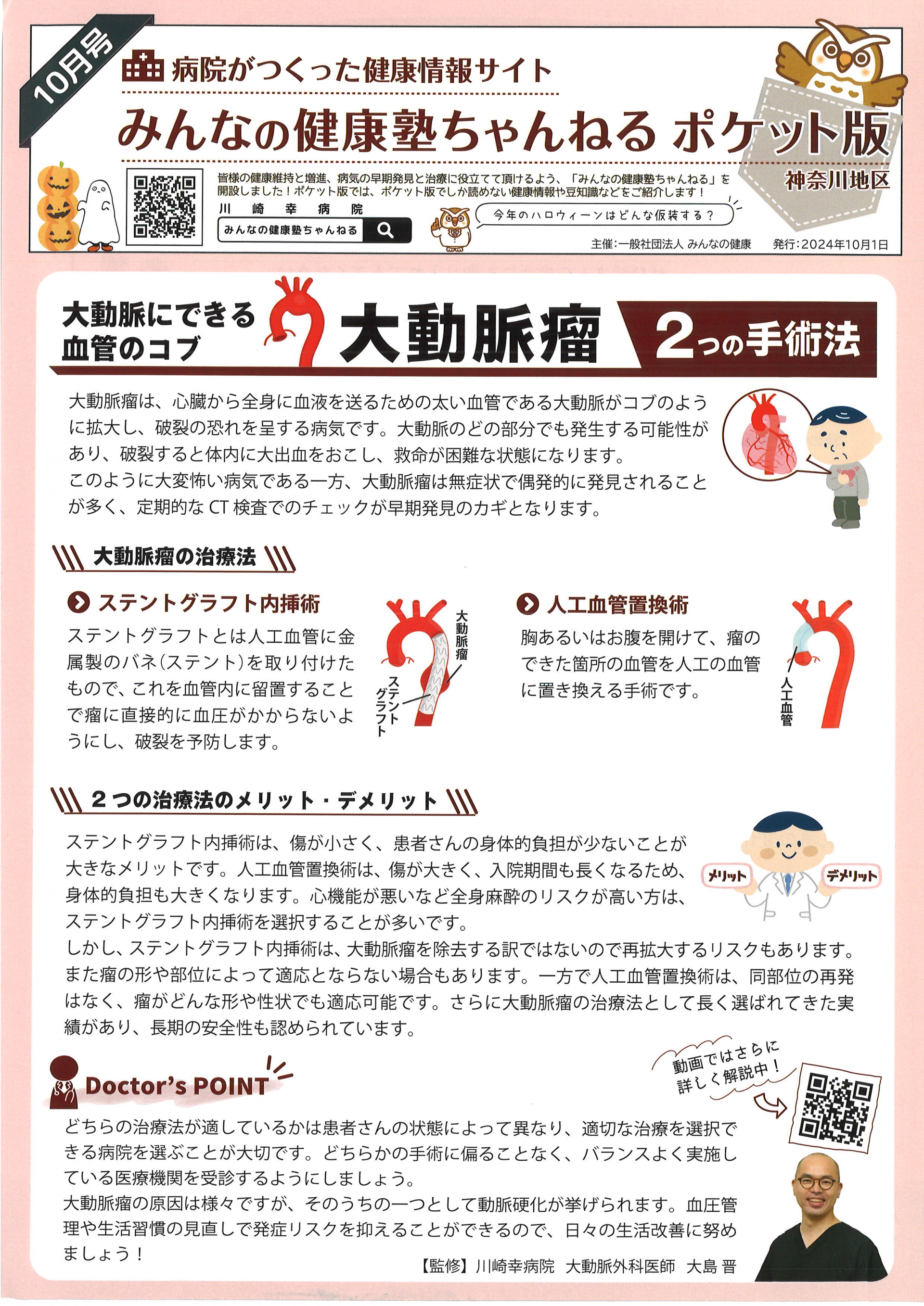 2024.10.11 お知らせ 【久末居宅】みんなの健康塾ちゃんねる 10月号 Tweet シェアする 今月のテーマは「大動脈瘤」と「乳がん啓発月間」です。 どちらの疾患も自分の周囲の方が罹患しており、他人事ではない疾患となっています。 【久末居宅 S】 前の記事 2024.10.11 お知らせ 【久末居宅】 高次脳機能障害を知ろう 次の記事 2024.10.11 お知らせ 【久末居宅】プラザ橘だより 10月1日号 一覧へ戻る