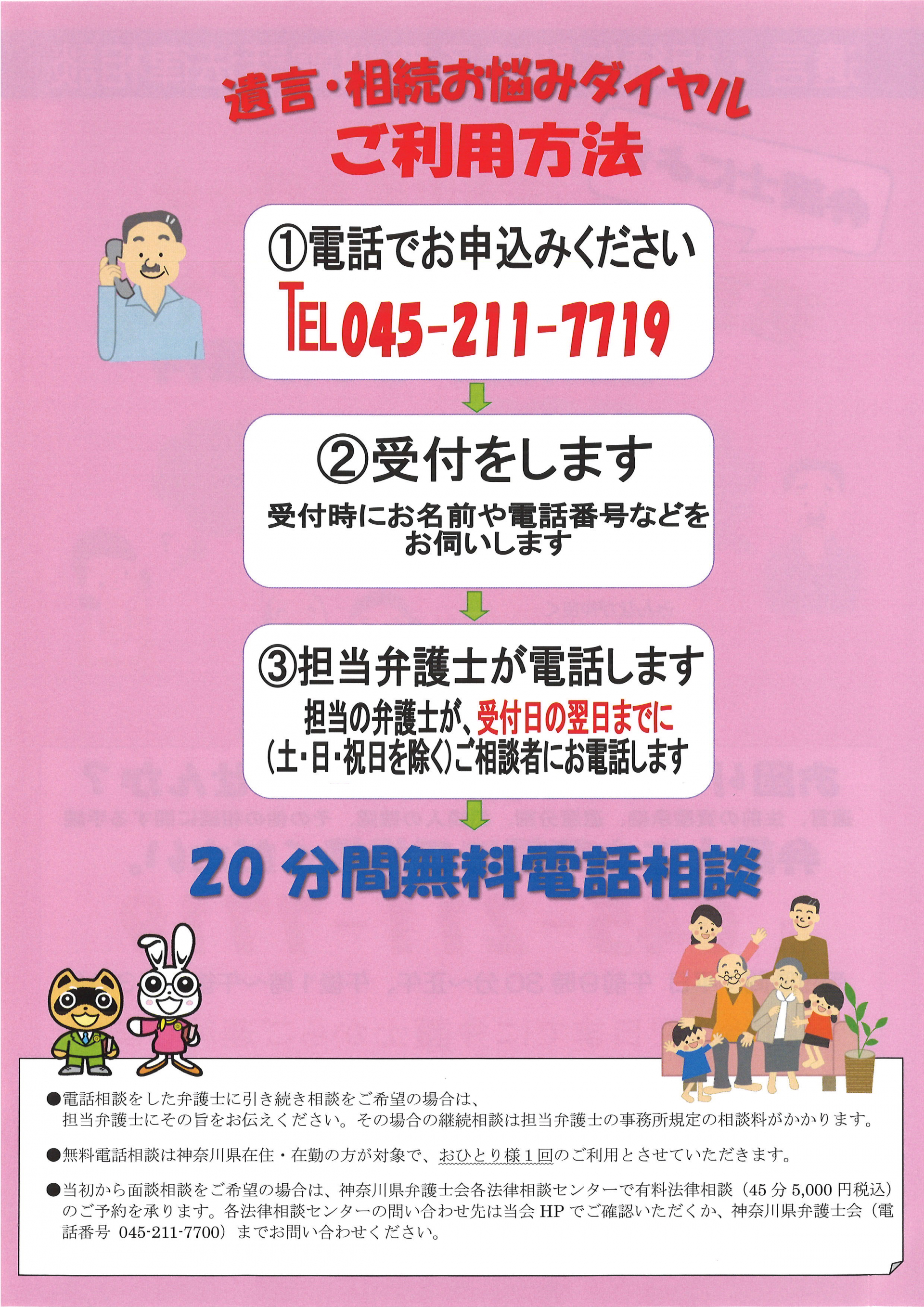 【久末居宅】神奈川県弁護士会 遺言・相続お悩みダイヤル。